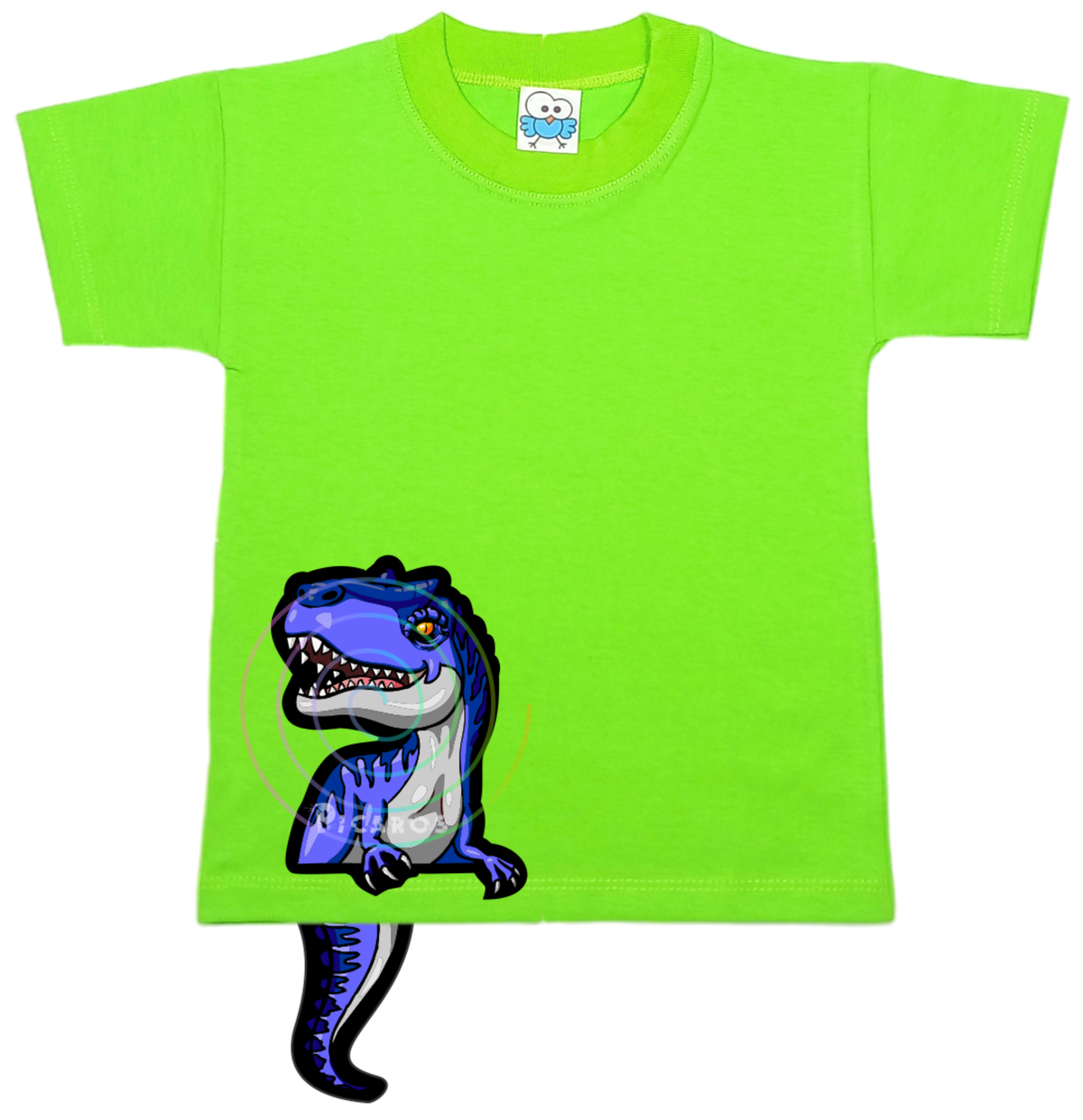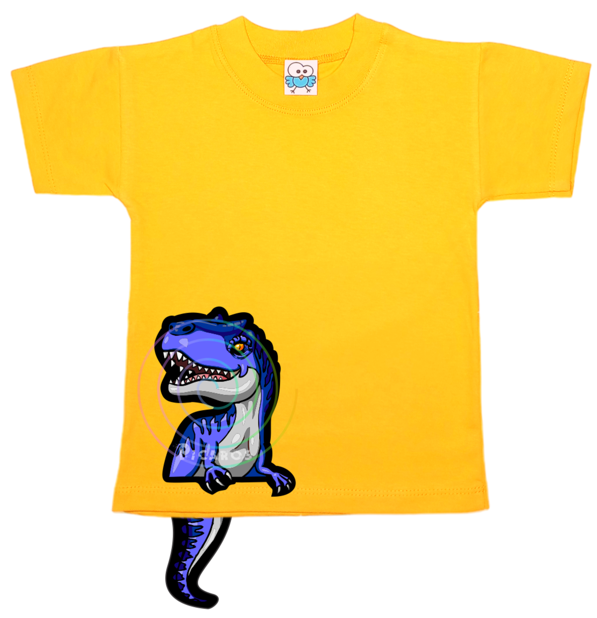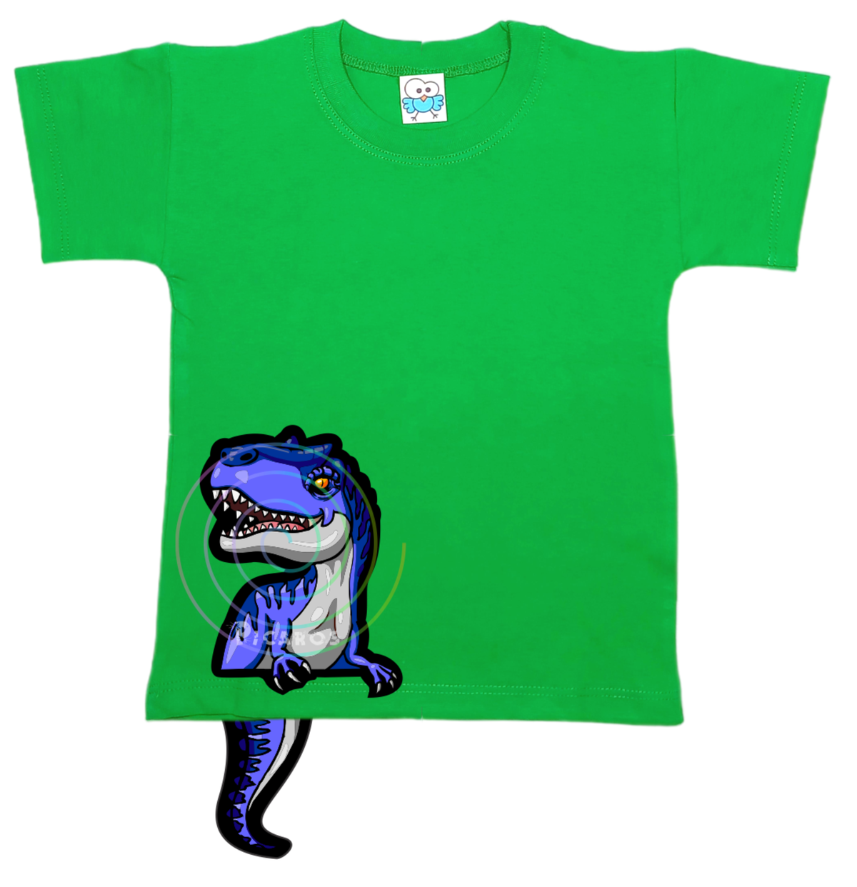 DISEÑO DE DINOSAURIO CON COLITA QUE SOBRESALE DE LA REMERA