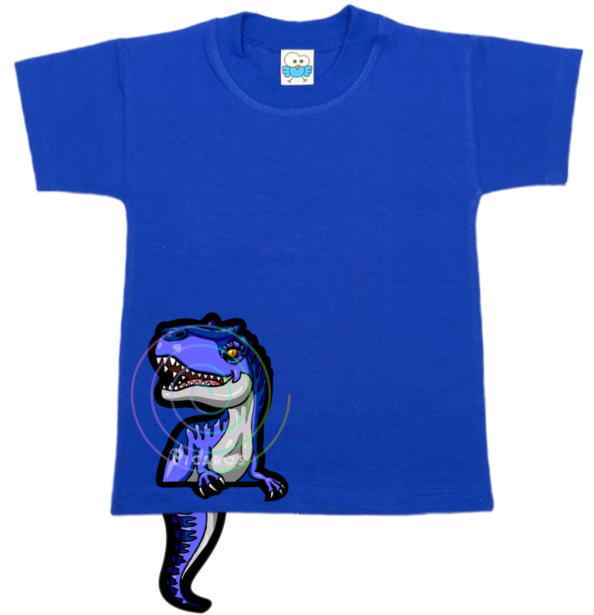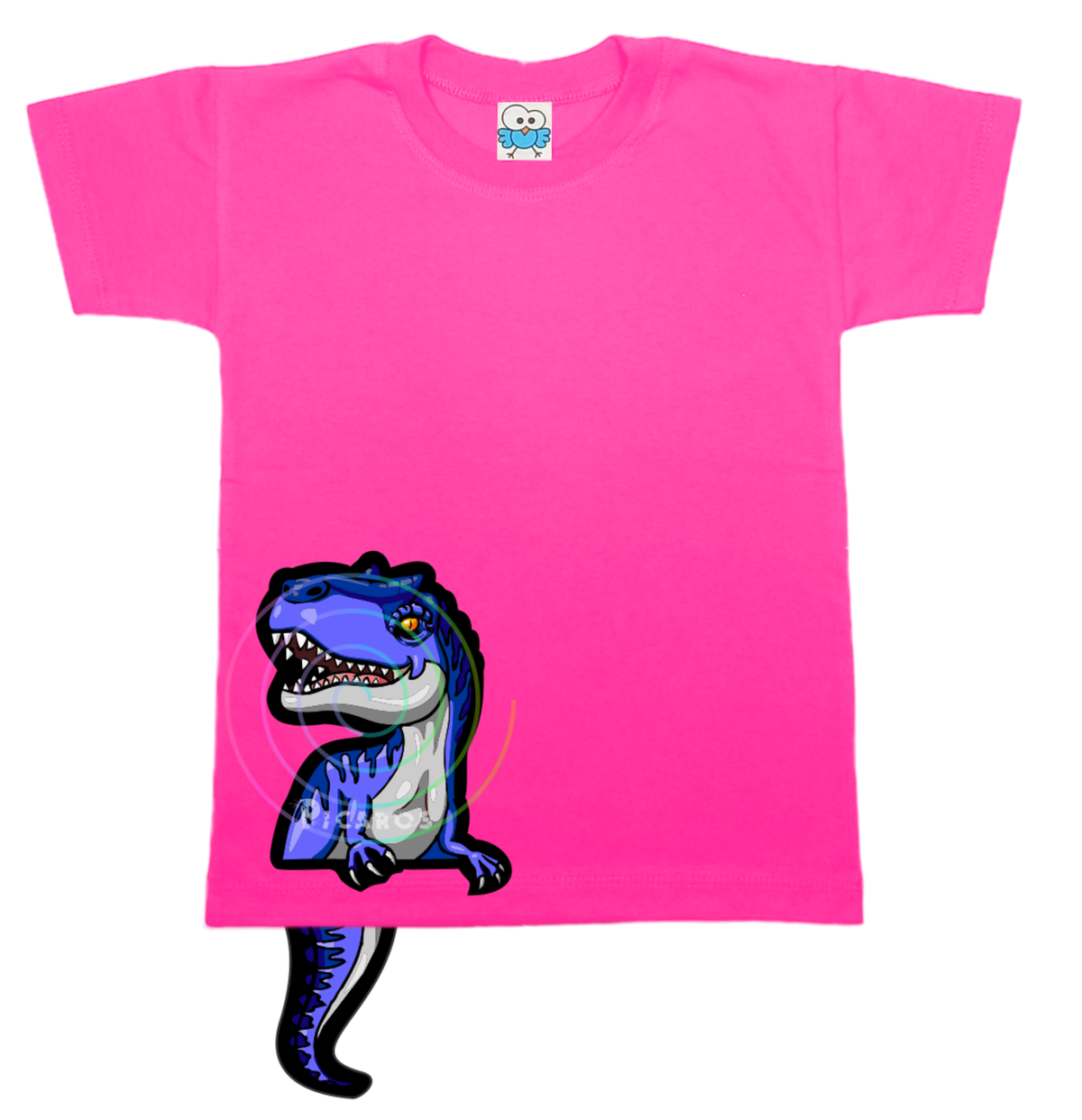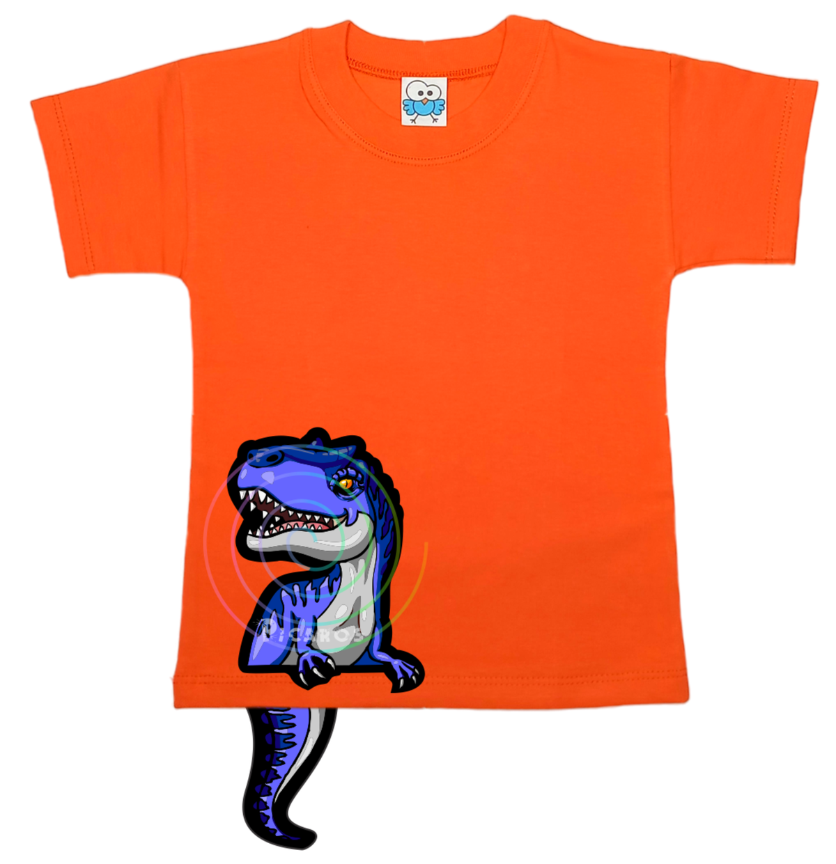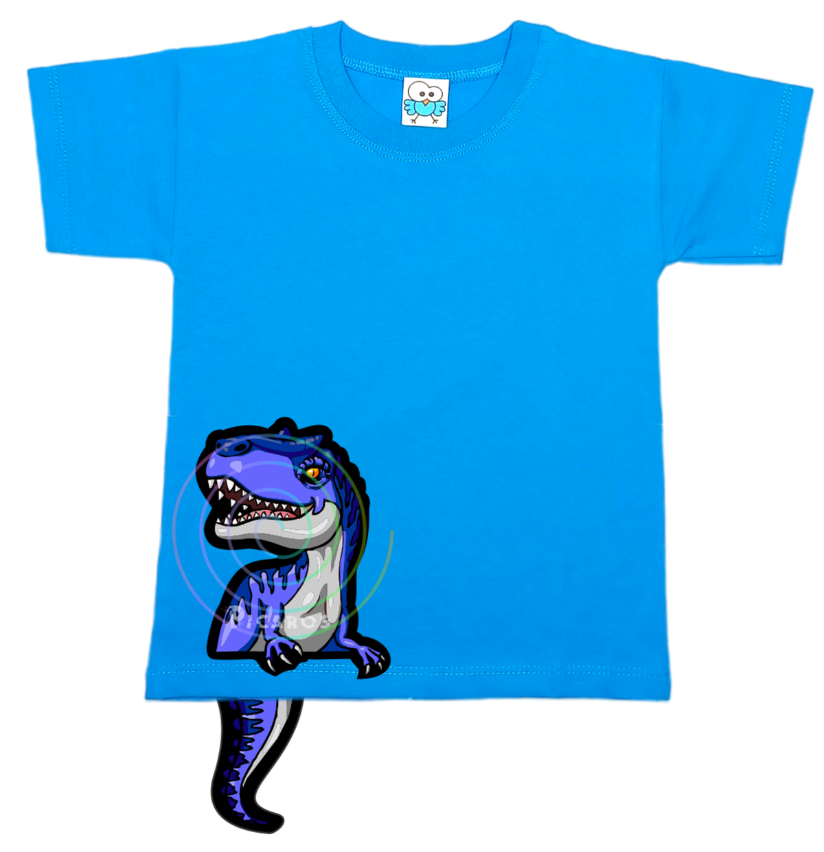 DISEÑO DE DINOSAURIO CON COLITA QUE SOBRESALE DE LA REMERA