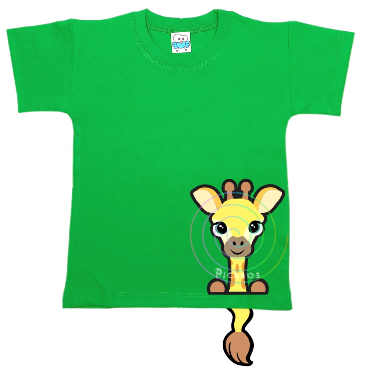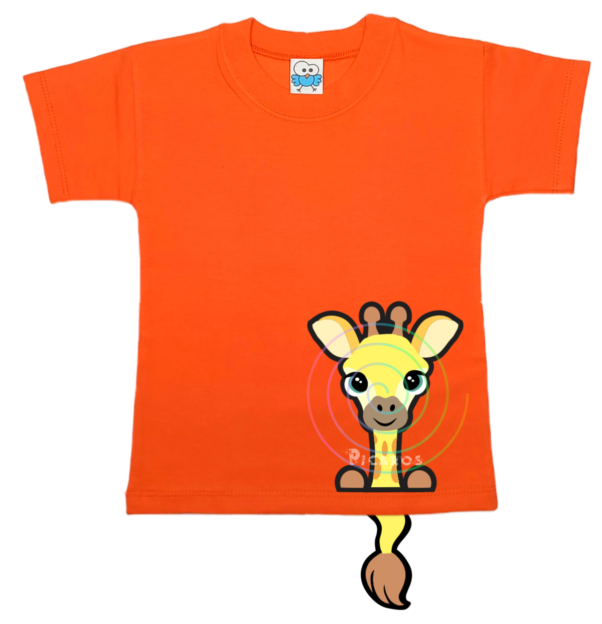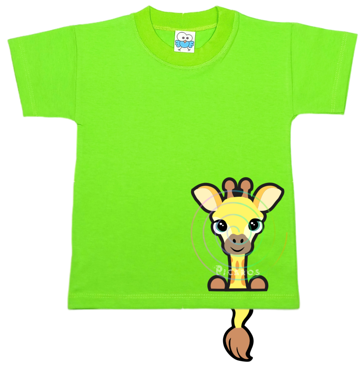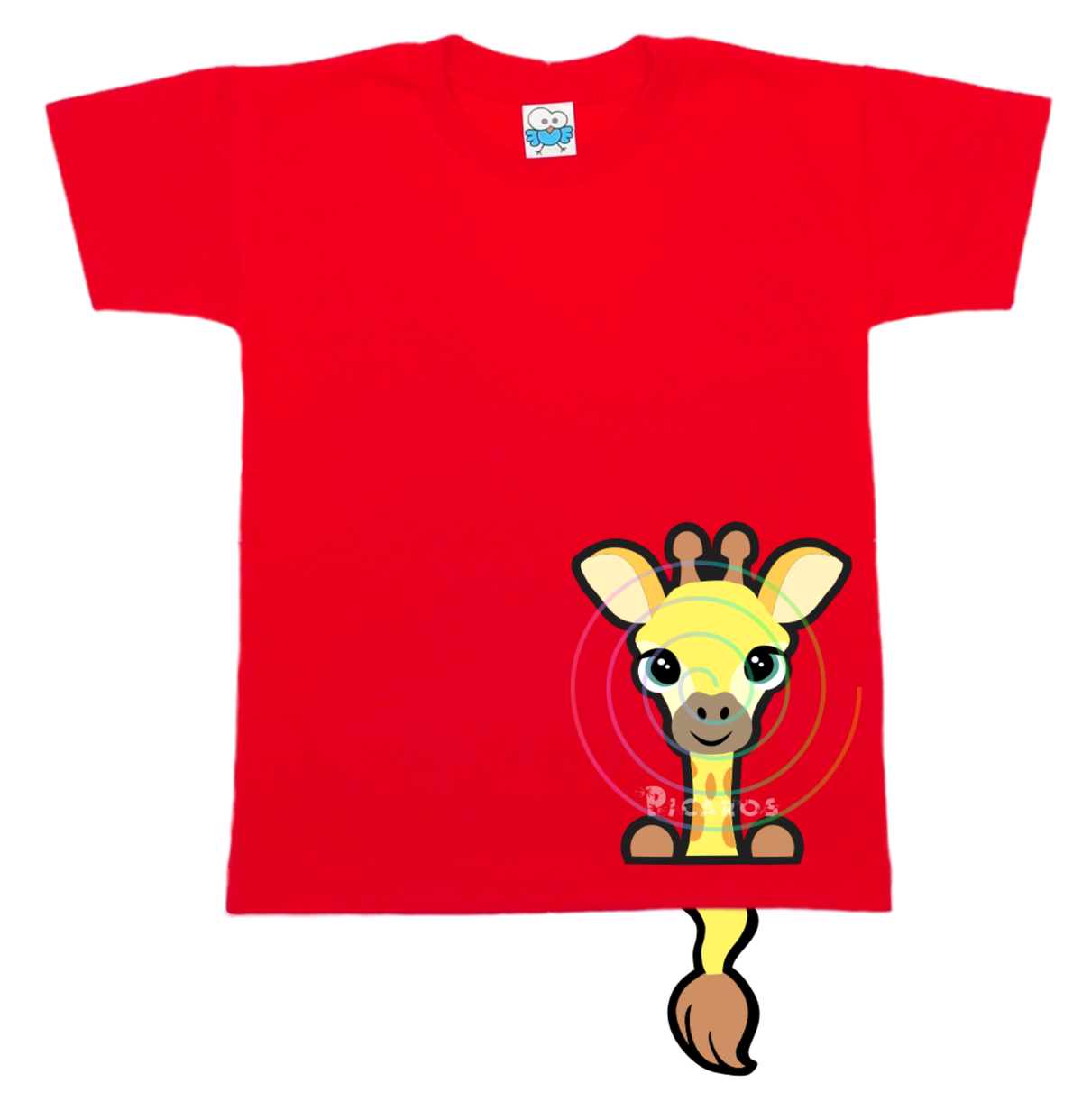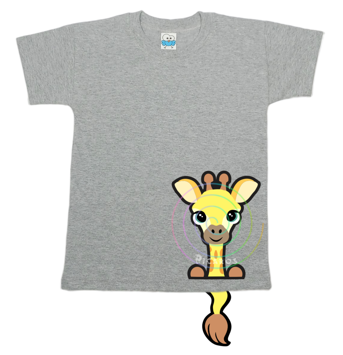 DISEÑO DE JIRAFA CON COLITA QUE SOBRESALE DE LA REMERA