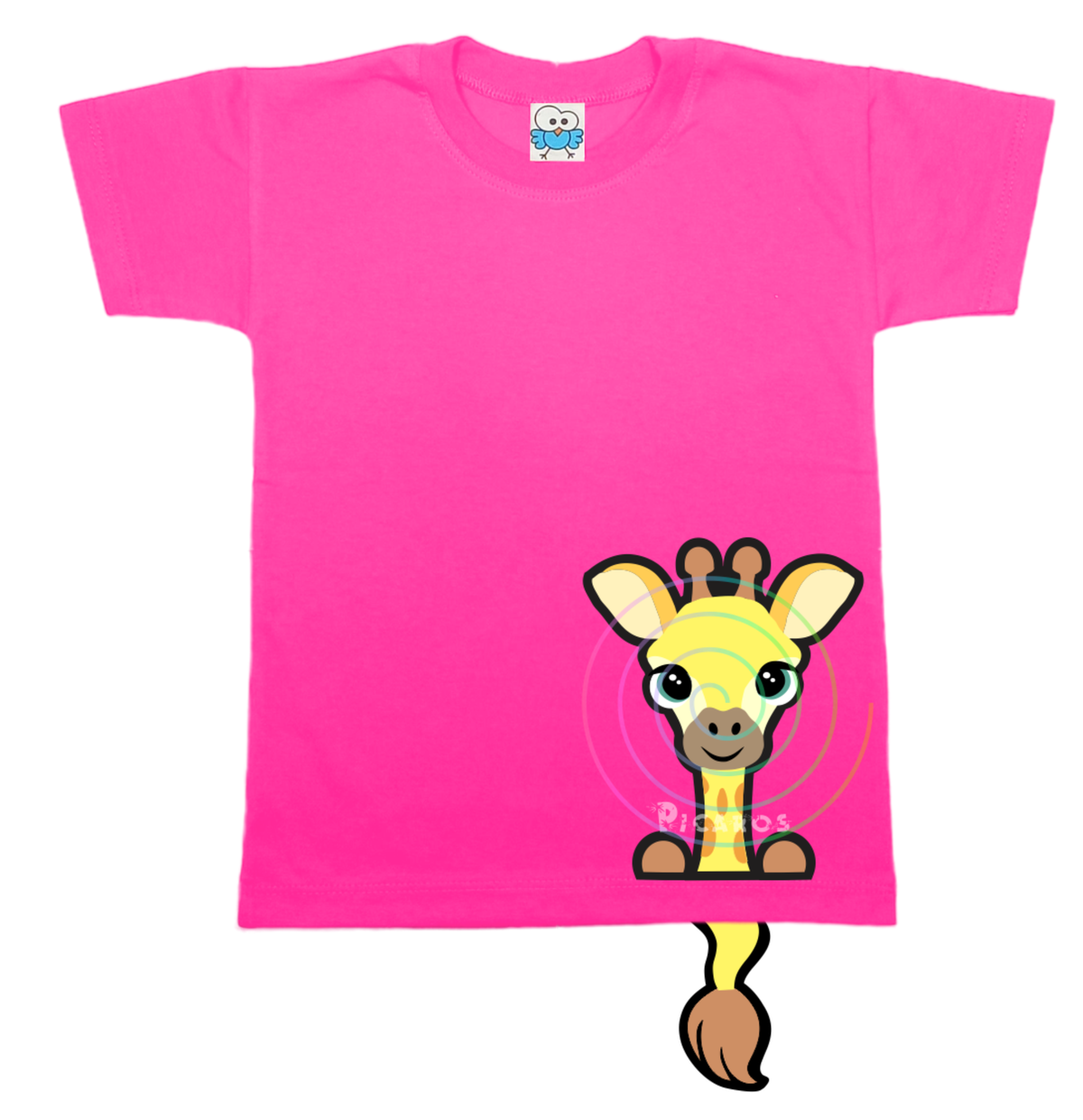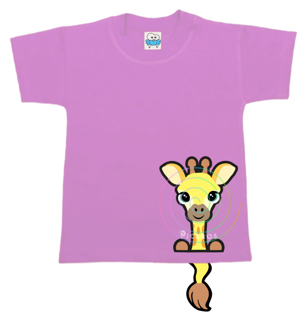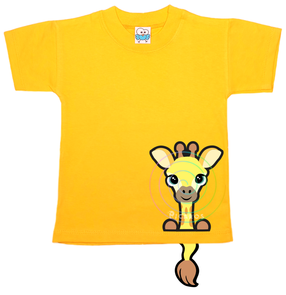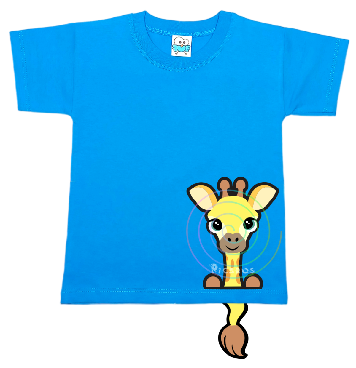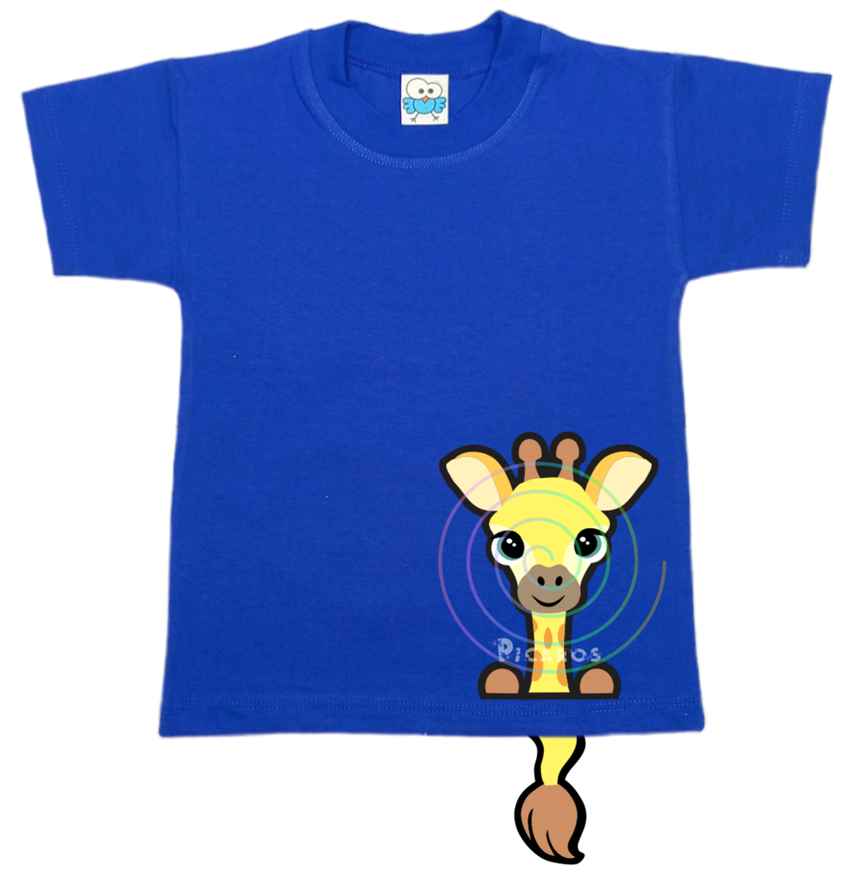 DISEÑO DE JIRAFA CON COLITA QUE SOBRESALE DE LA REMERA