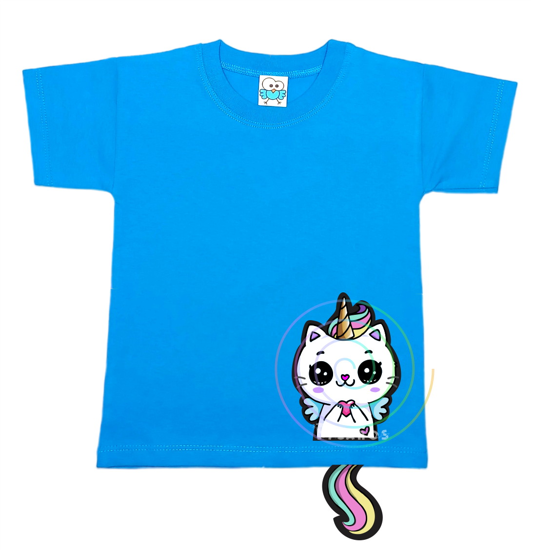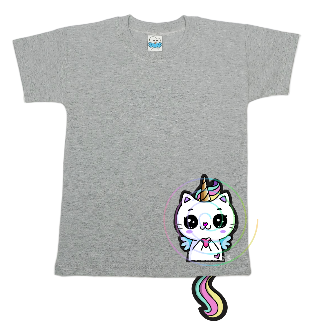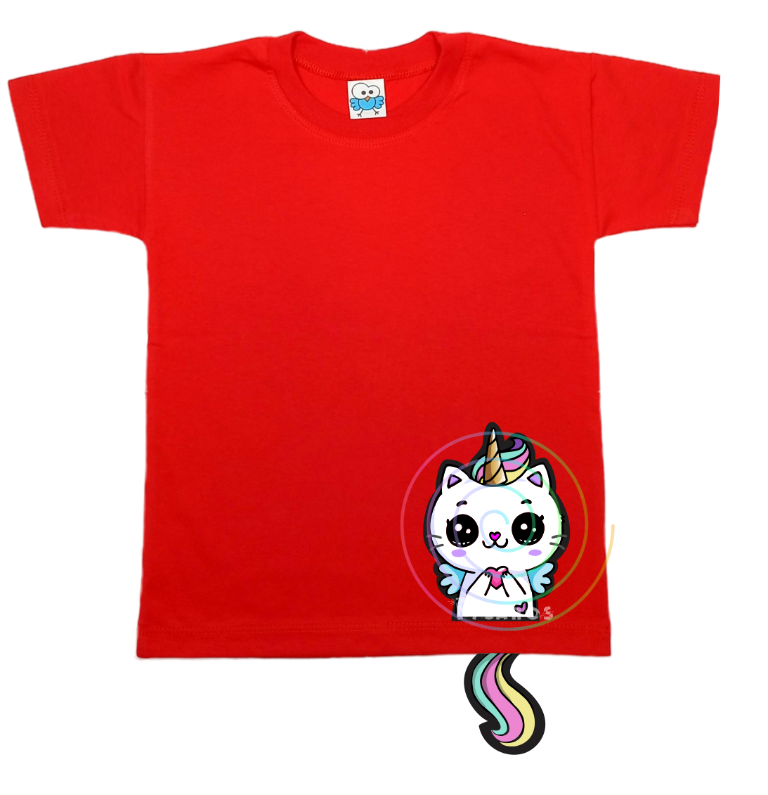 DISEÑO DE GATITO CON COLITA QUE SOBRESALE DE LA REMERA