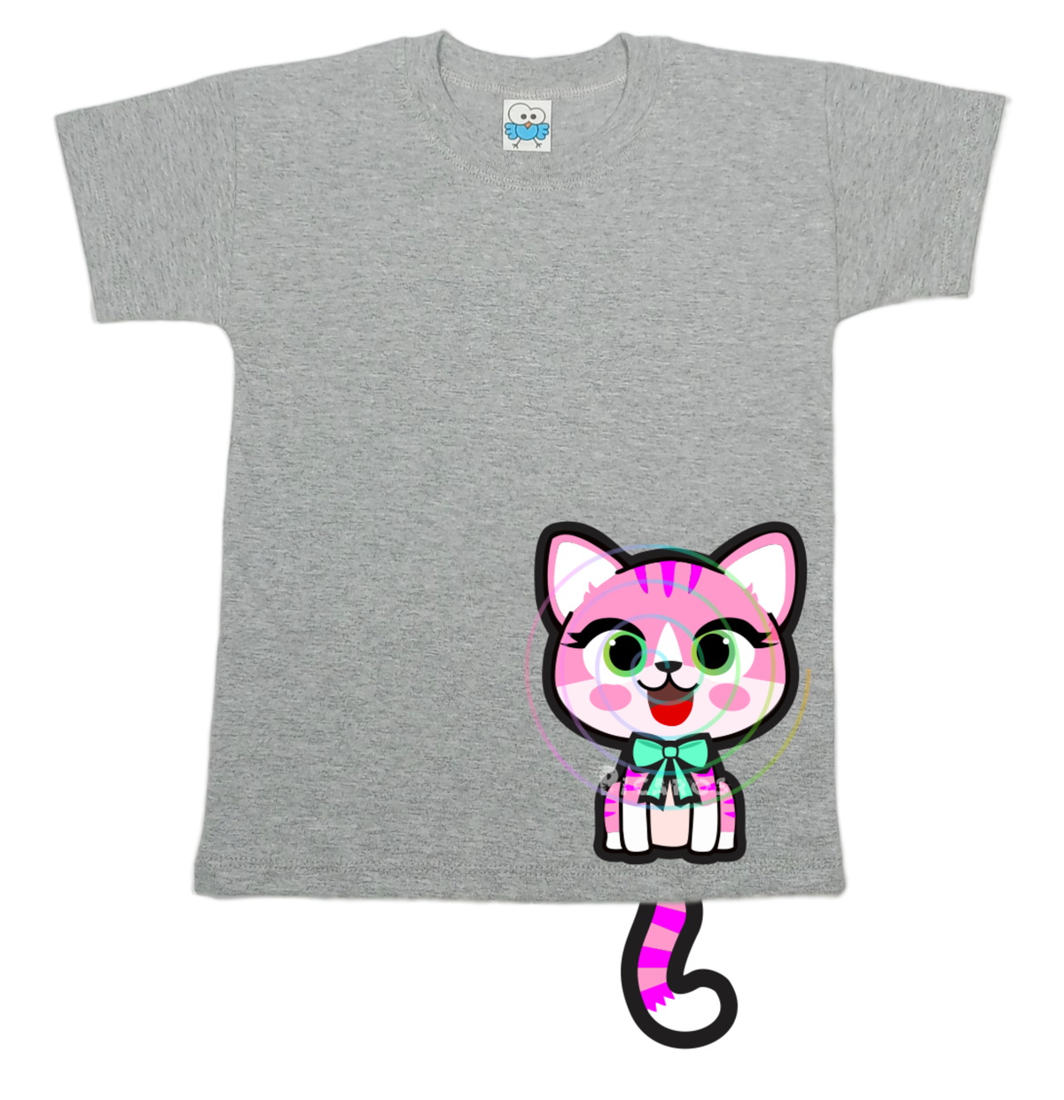 DISEÑO DE GATITA CON COLITA QUE SOBRESALE DE LA REMERA