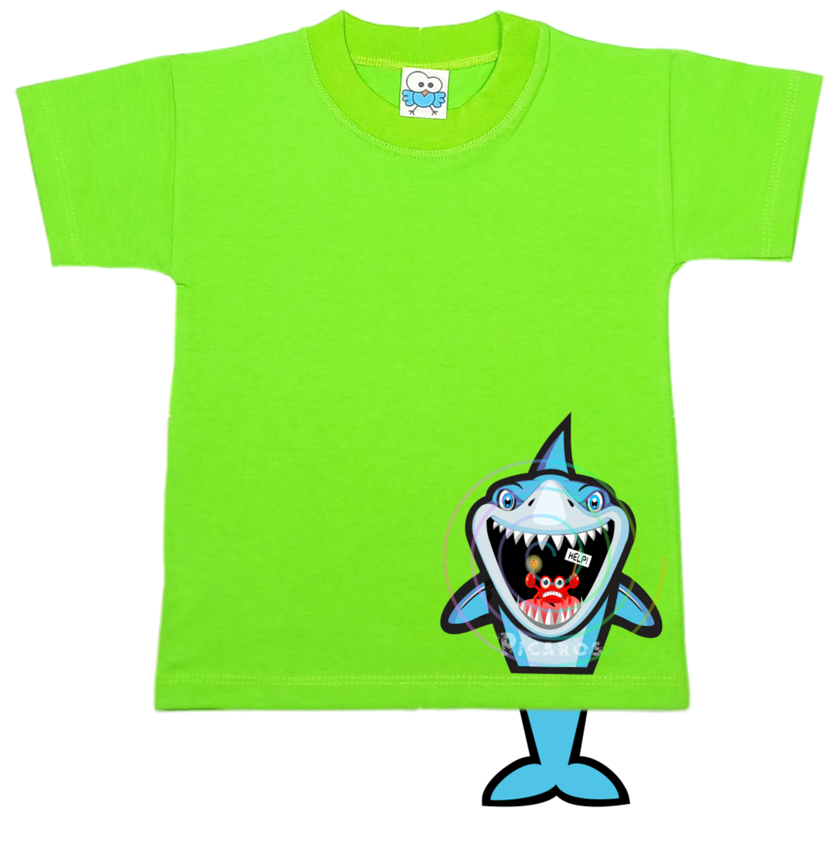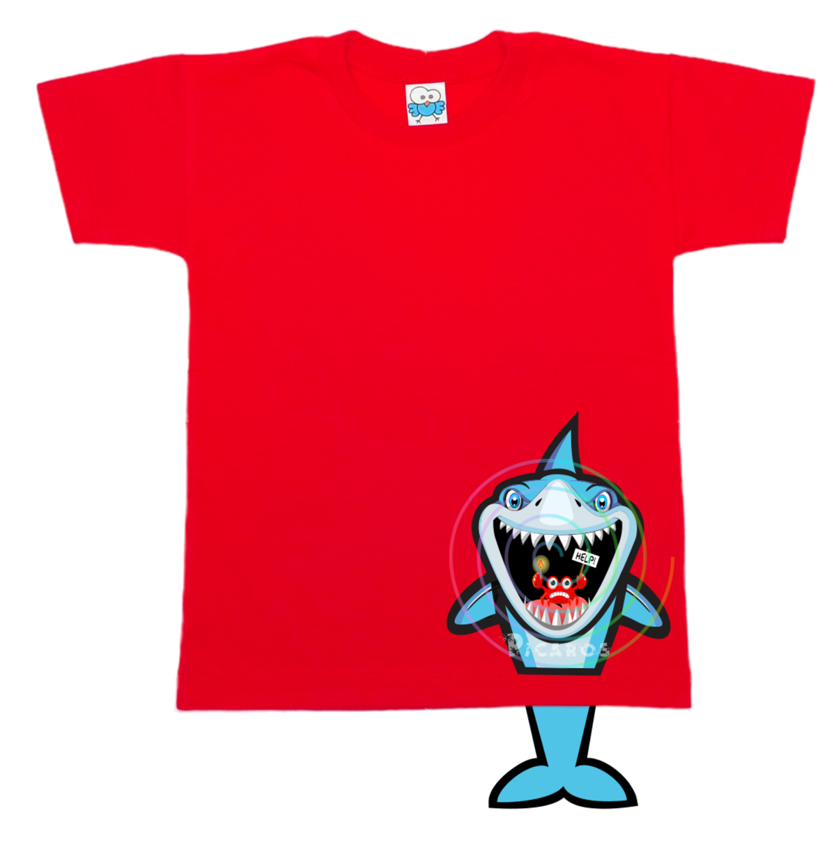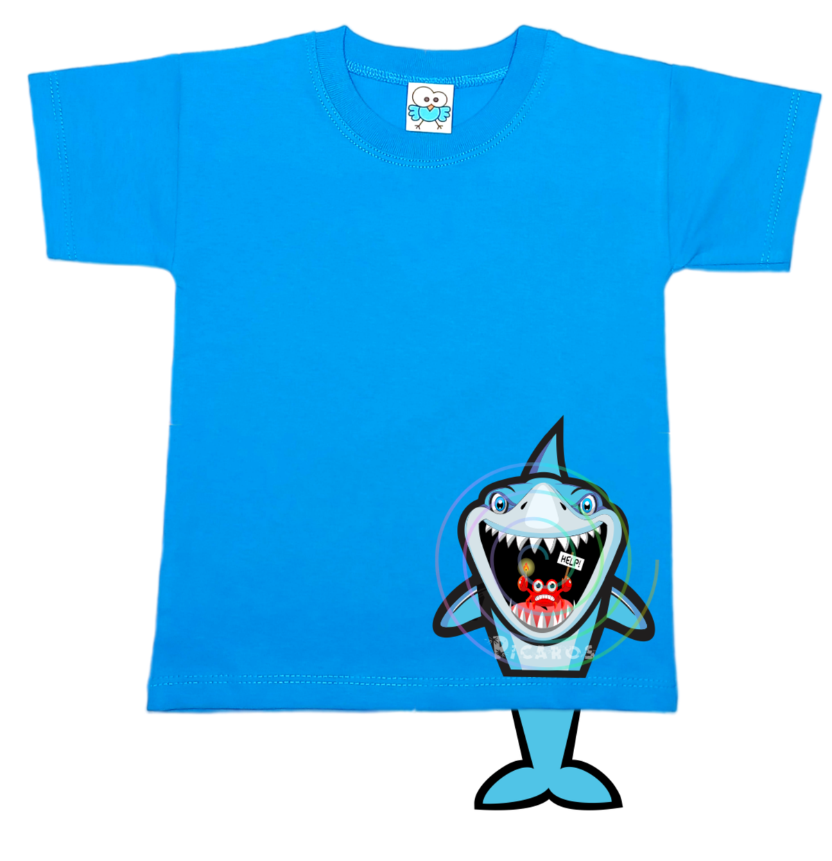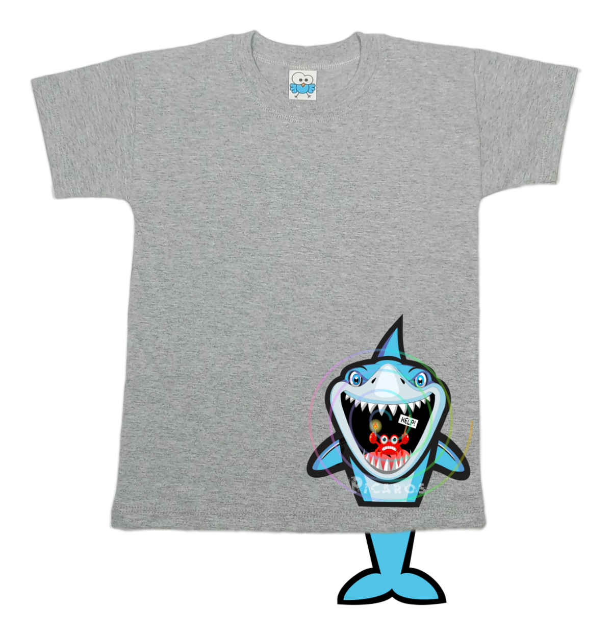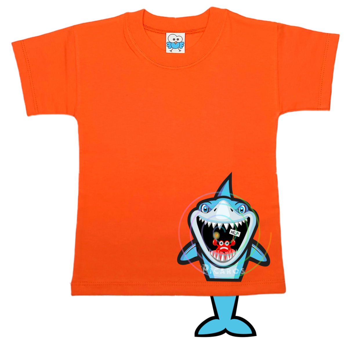 DISEÑO DE TIBURÓN CON COLITA QUE SOBRESALE DE LA REMERA