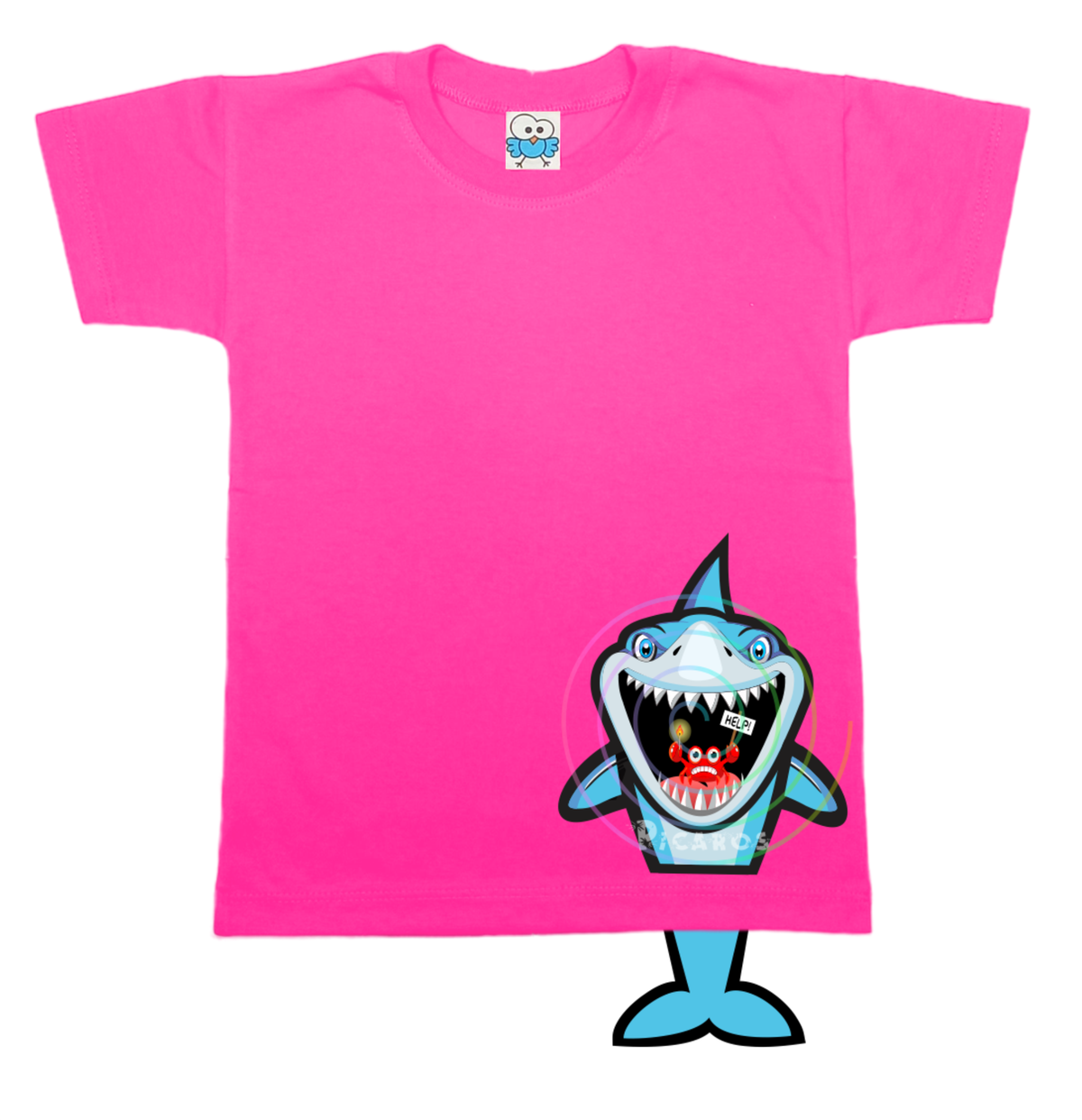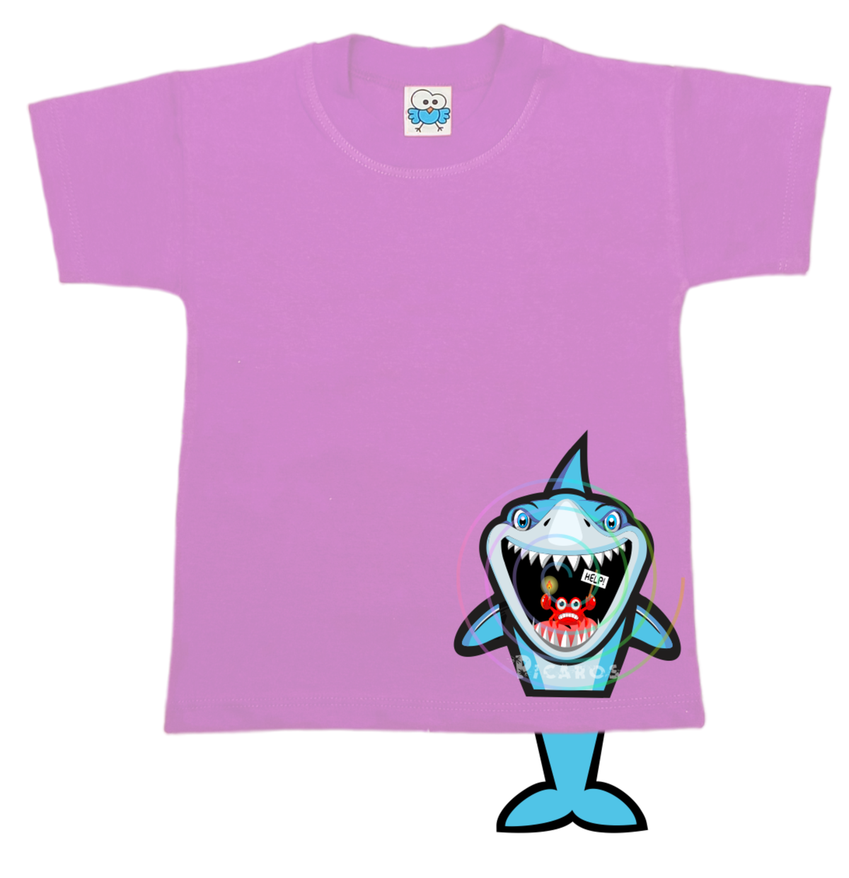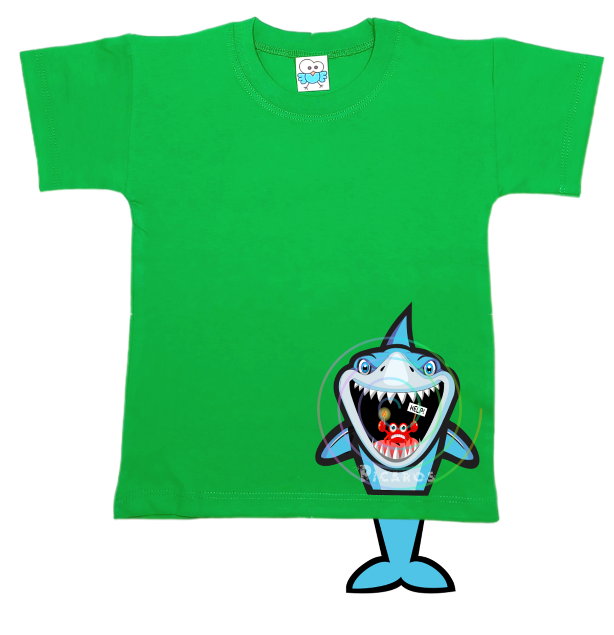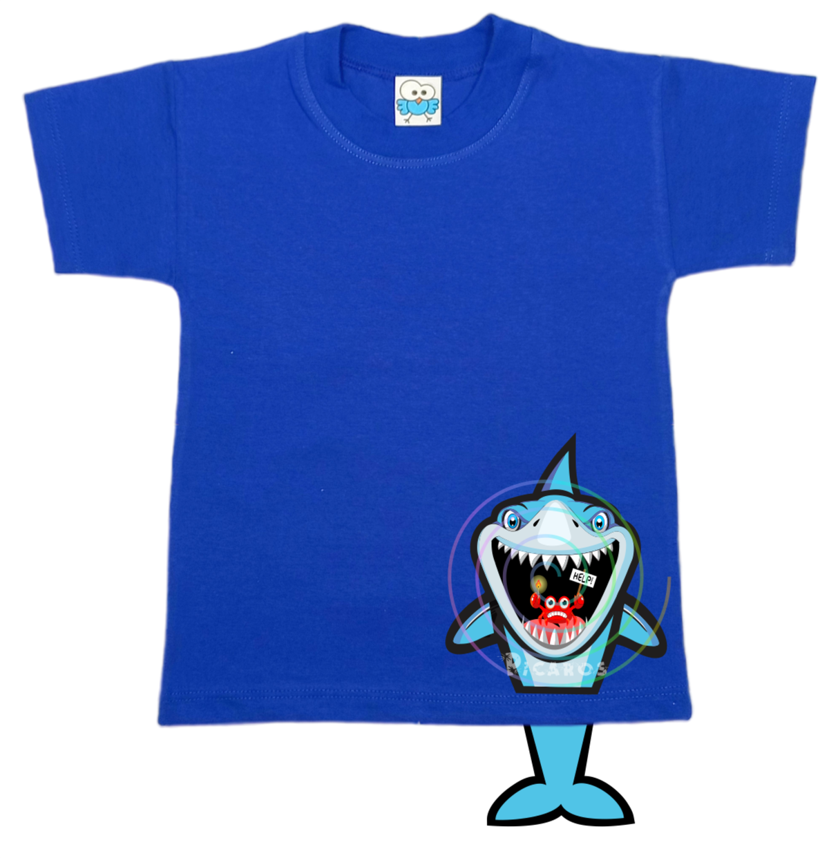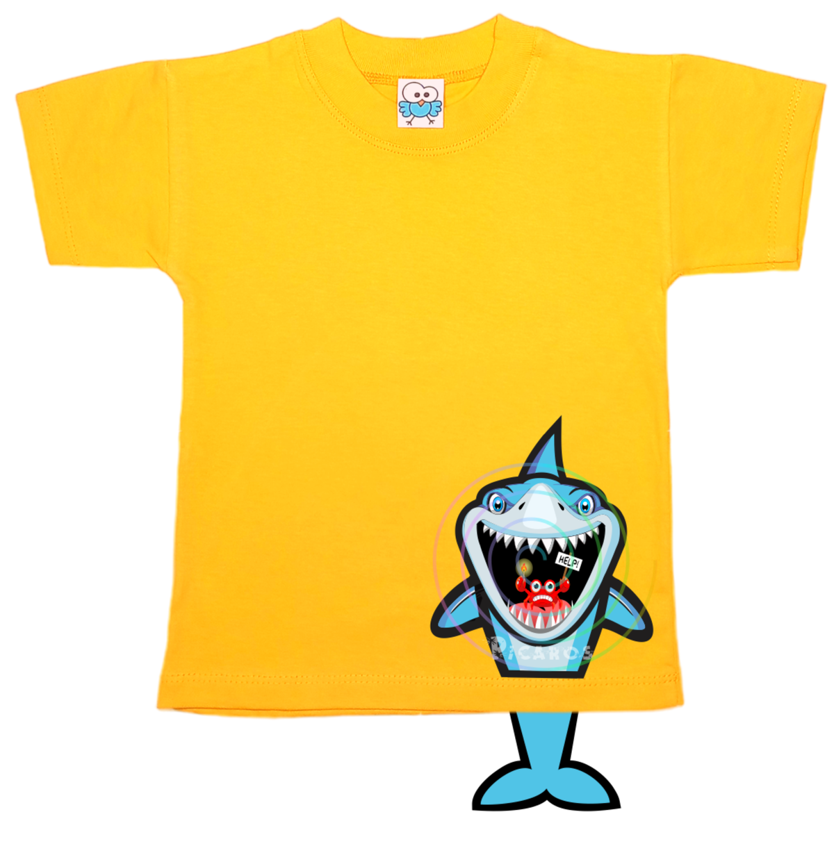 DISEÑO DE TIBURÓN CON COLITA QUE SOBRESALE DE LA REMERA