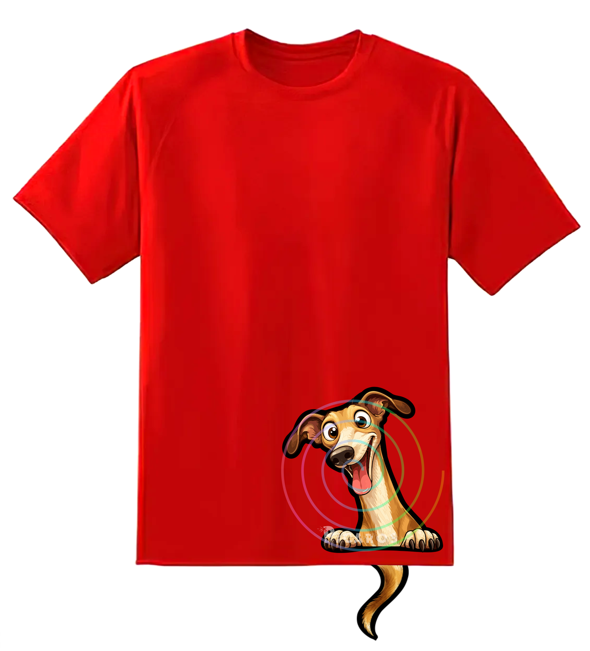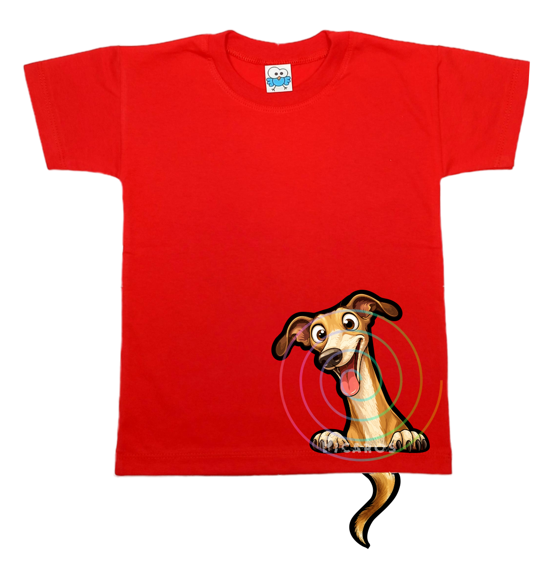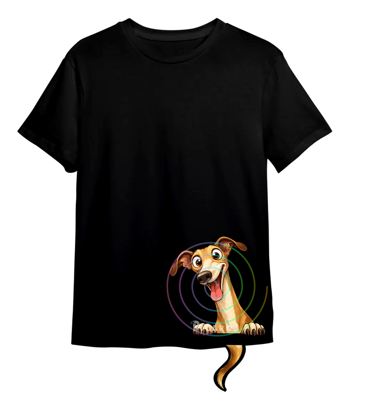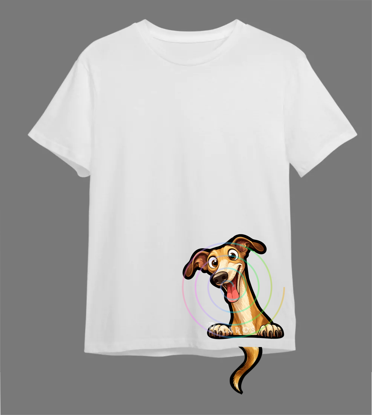 DISEÑO DE PERRO GALGO CON COLITA QUE SOBRESALE DE LA REMERA