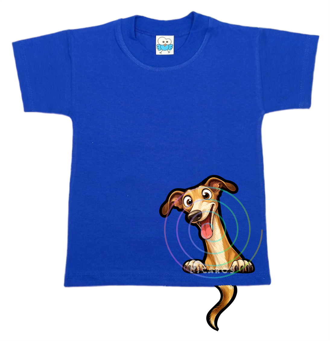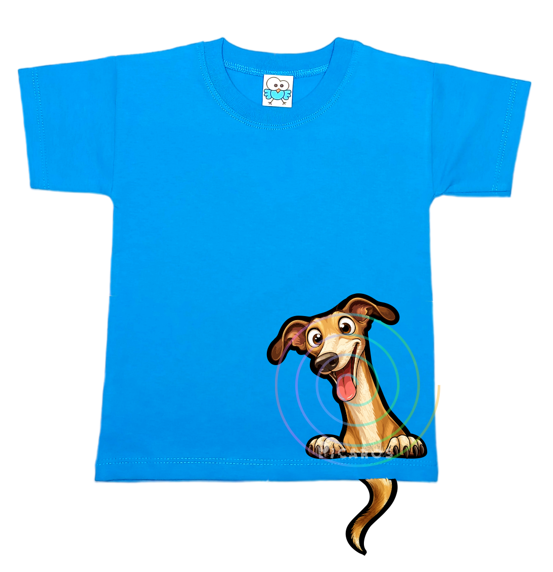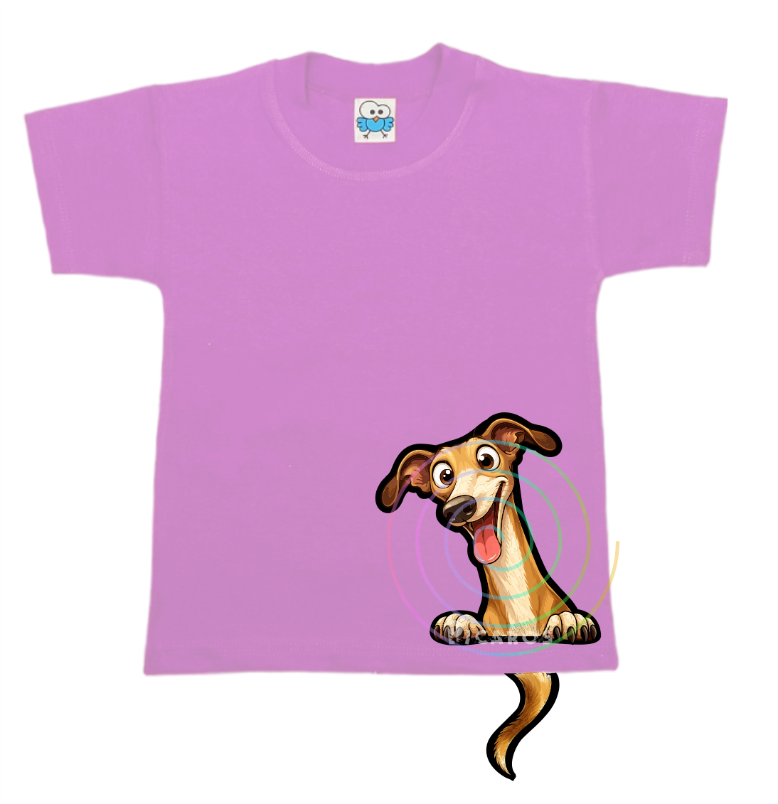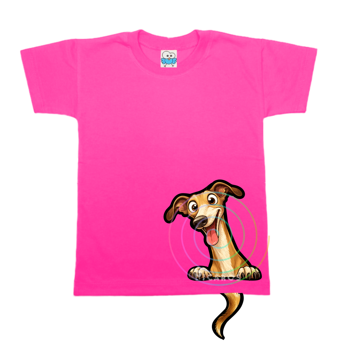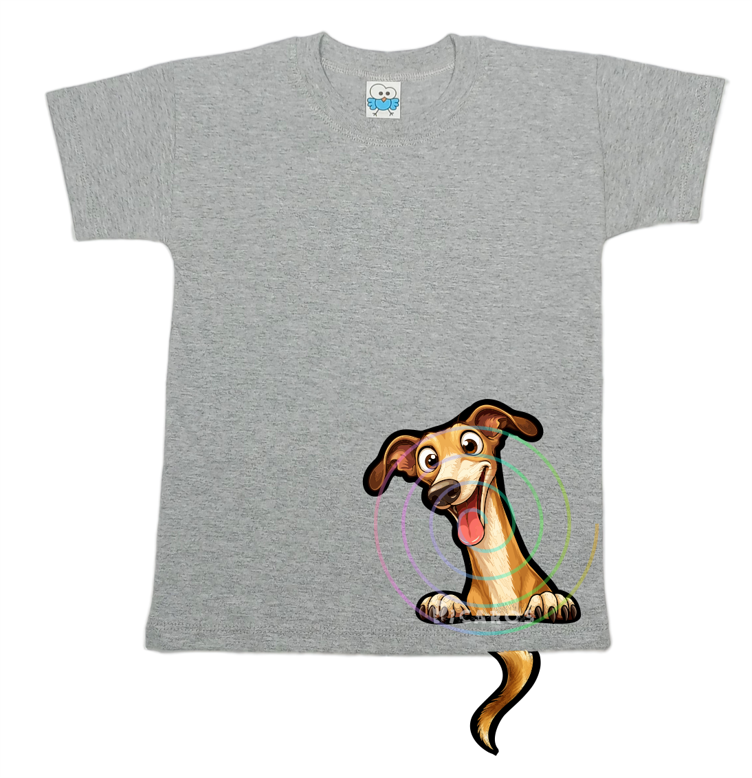 DISEÑO DE PERRO GALGO CON COLITA QUE SOBRESALE DE LA REMERA