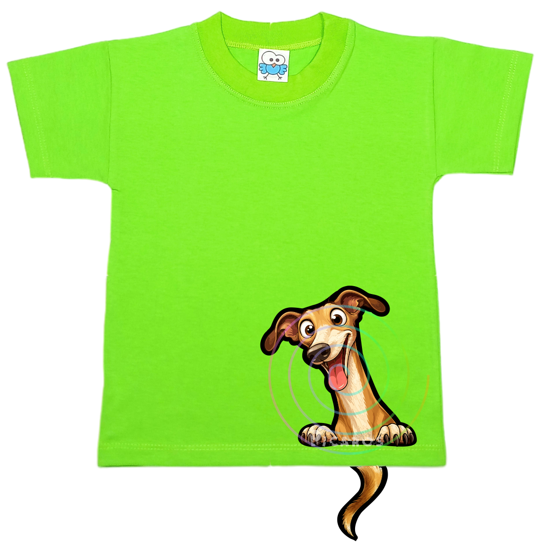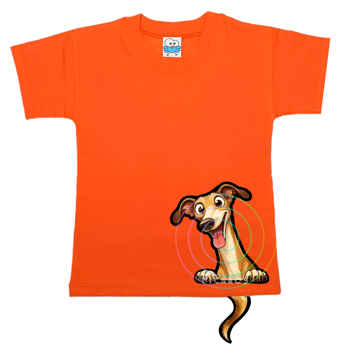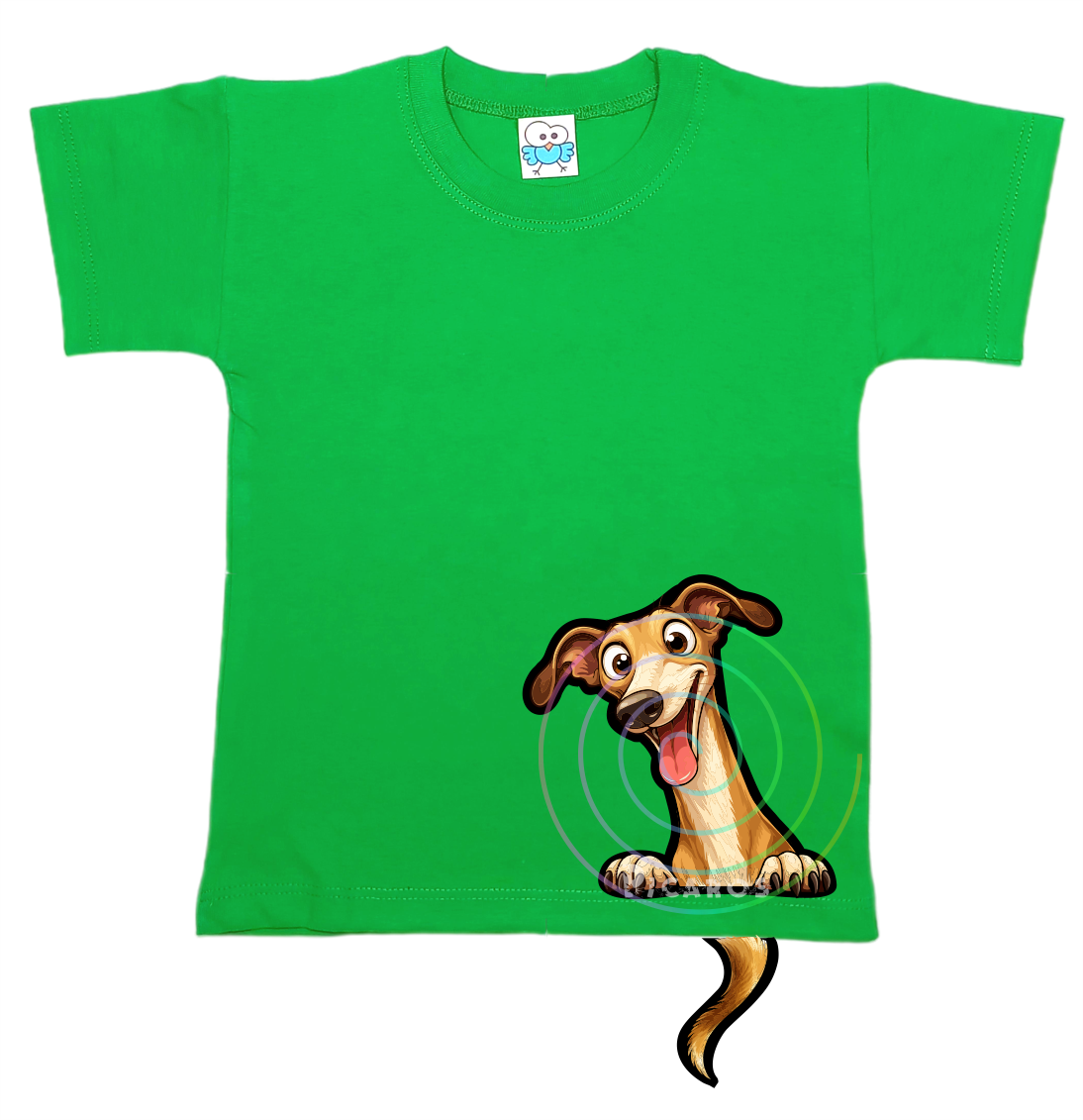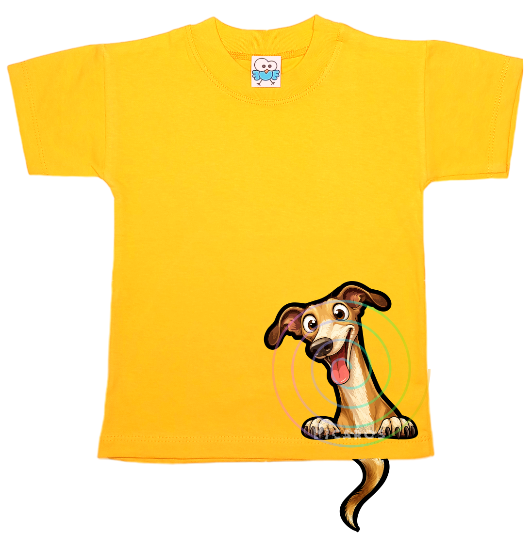 DISEÑO DE PERRO GALGO CON COLITA QUE SOBRESALE DE LA REMERA