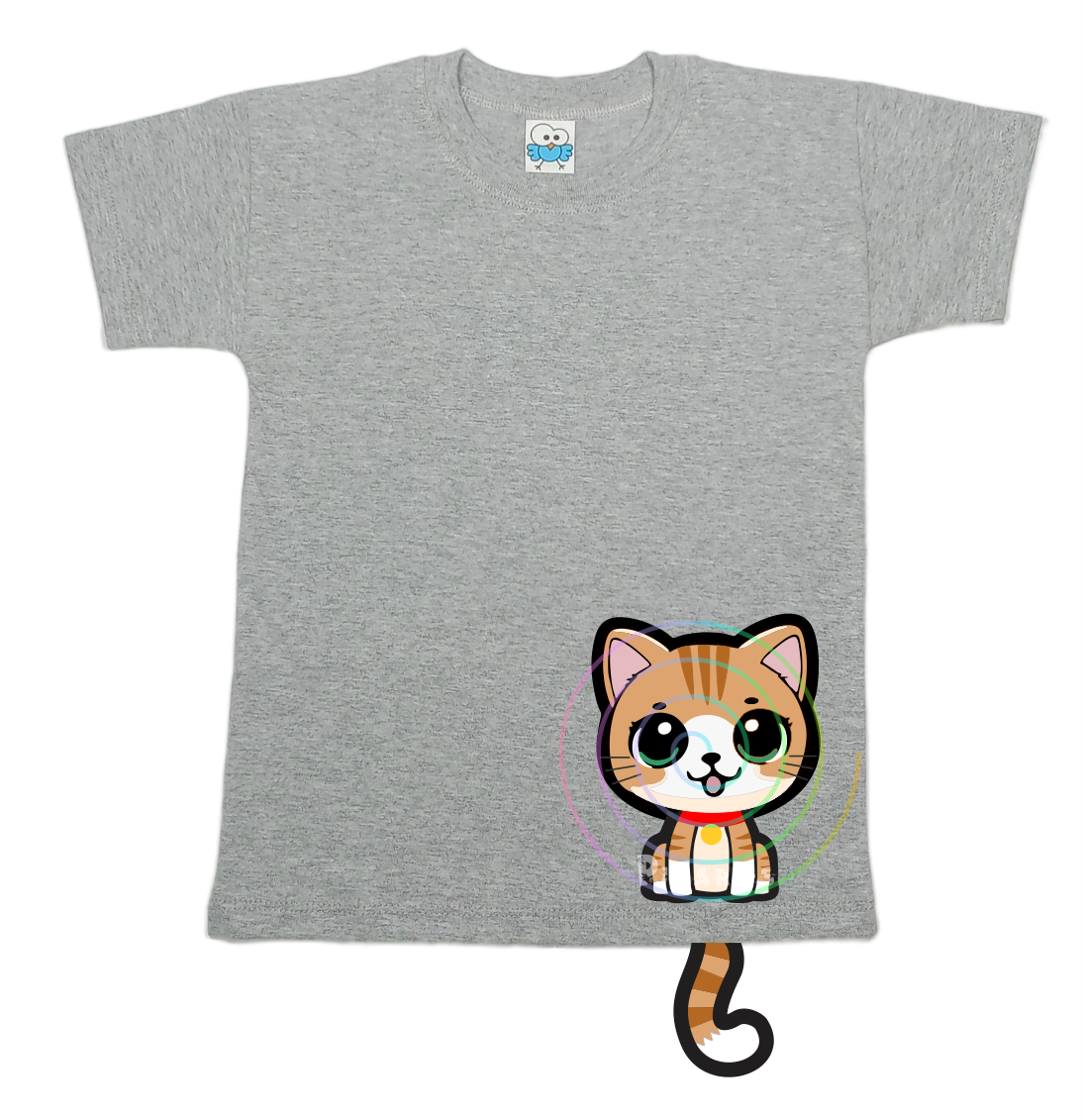 DISEÑO DE GATITO QUE LE SOBRESALE LA COLITA DE LA REMERA