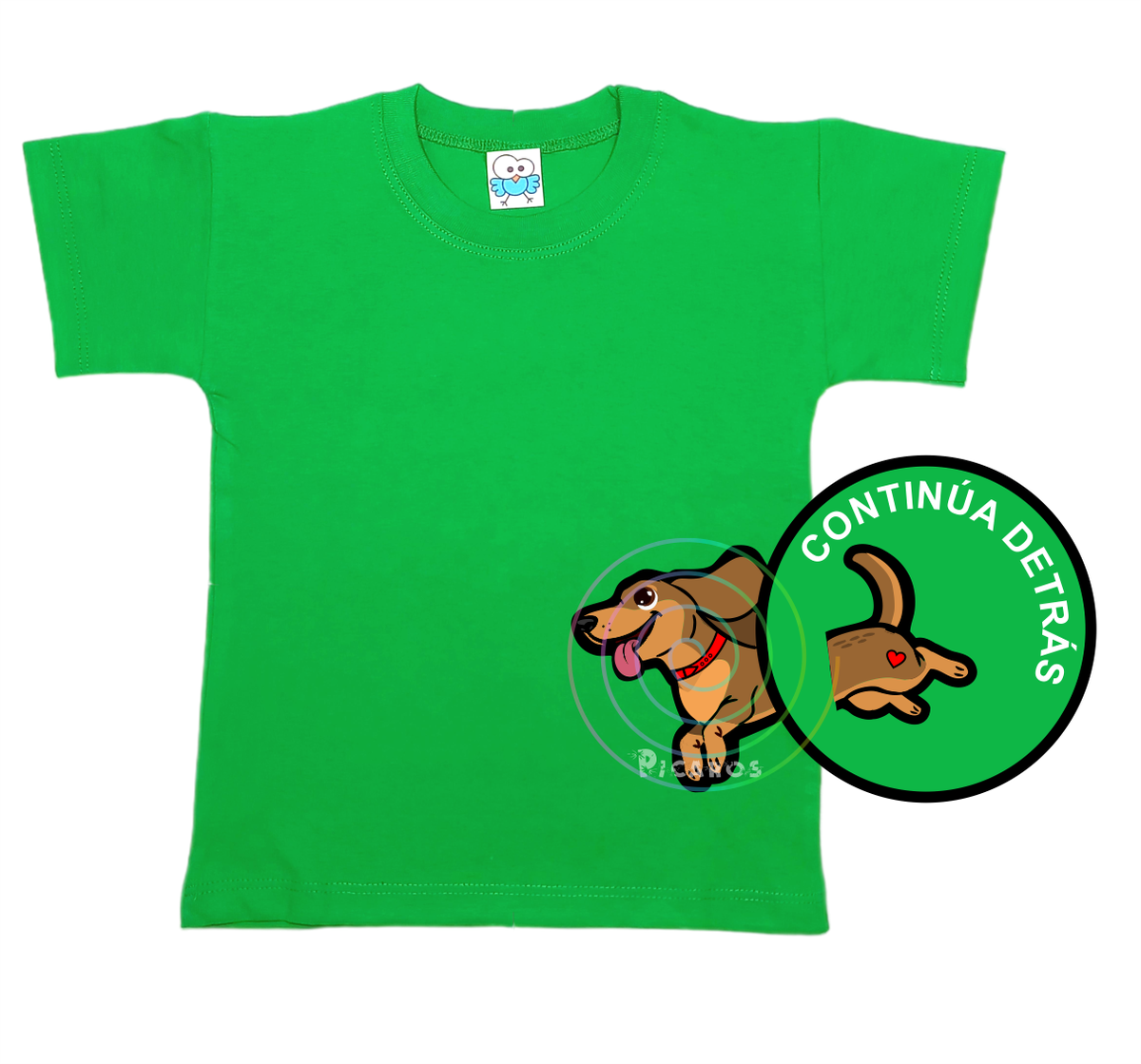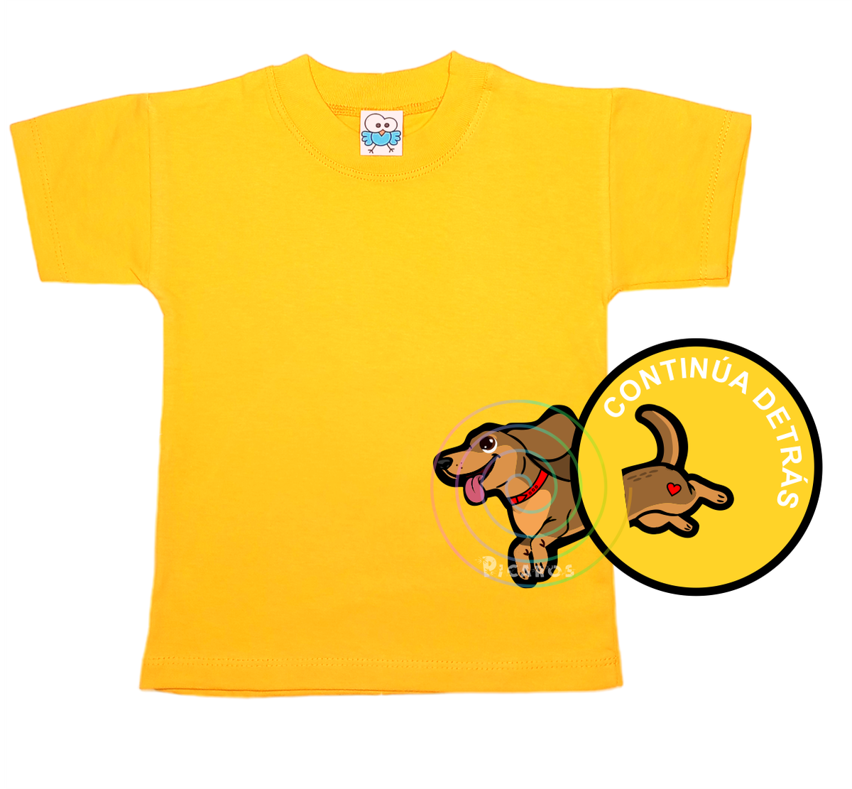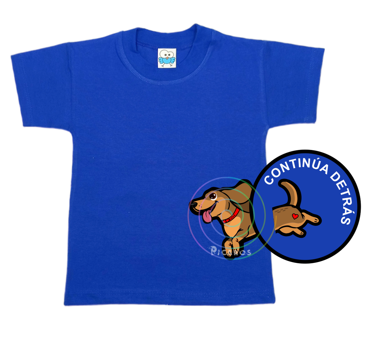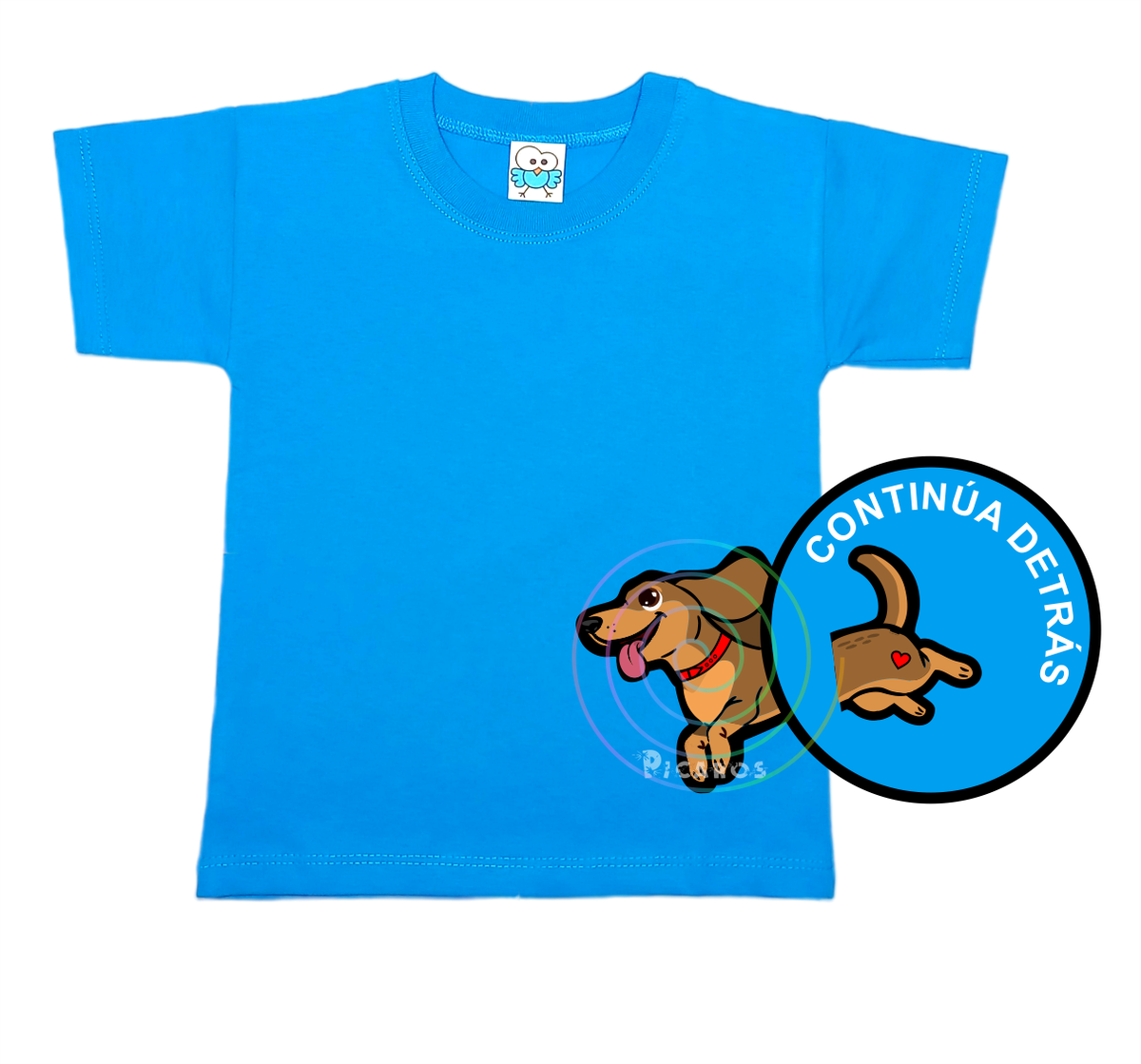 DISEÑO DE PERRO SALCHICHA QUE EMPIEZA EN EL FRENTE DE LA REMERA Y TERMINA POR LA ESPALDA