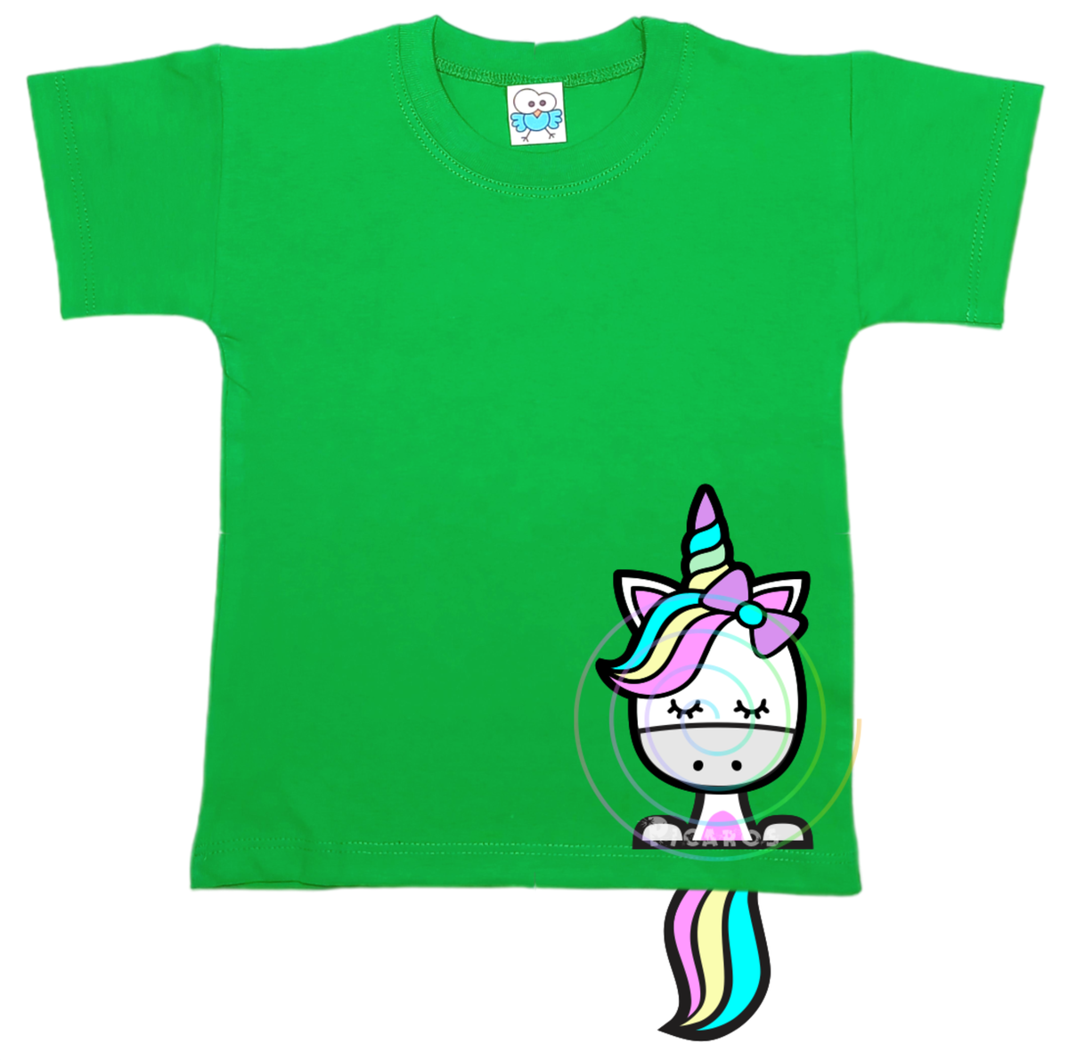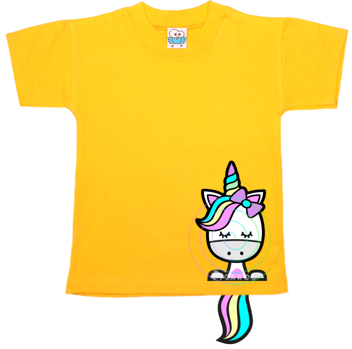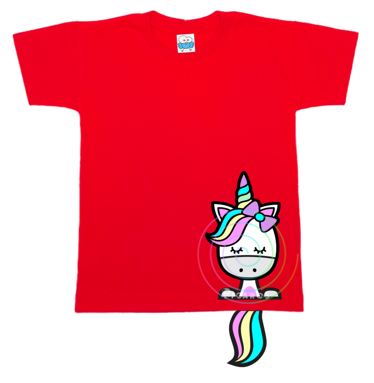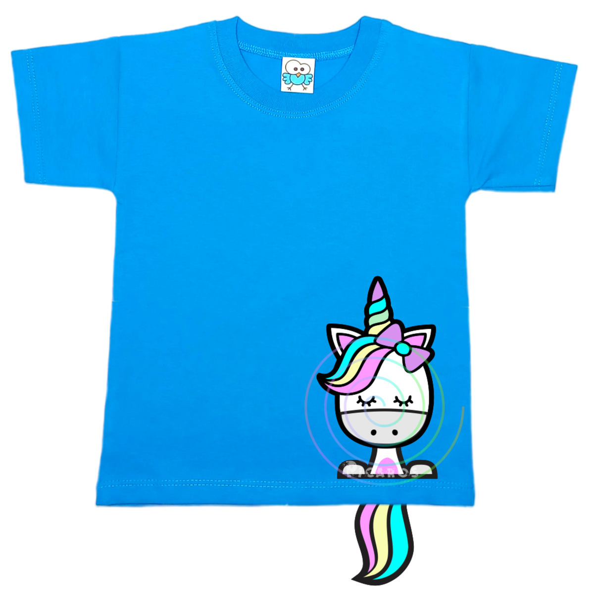 DISEÑO DE UNICORNIO QUE LE SOBRESALE LA COLITA DE LA REMERA