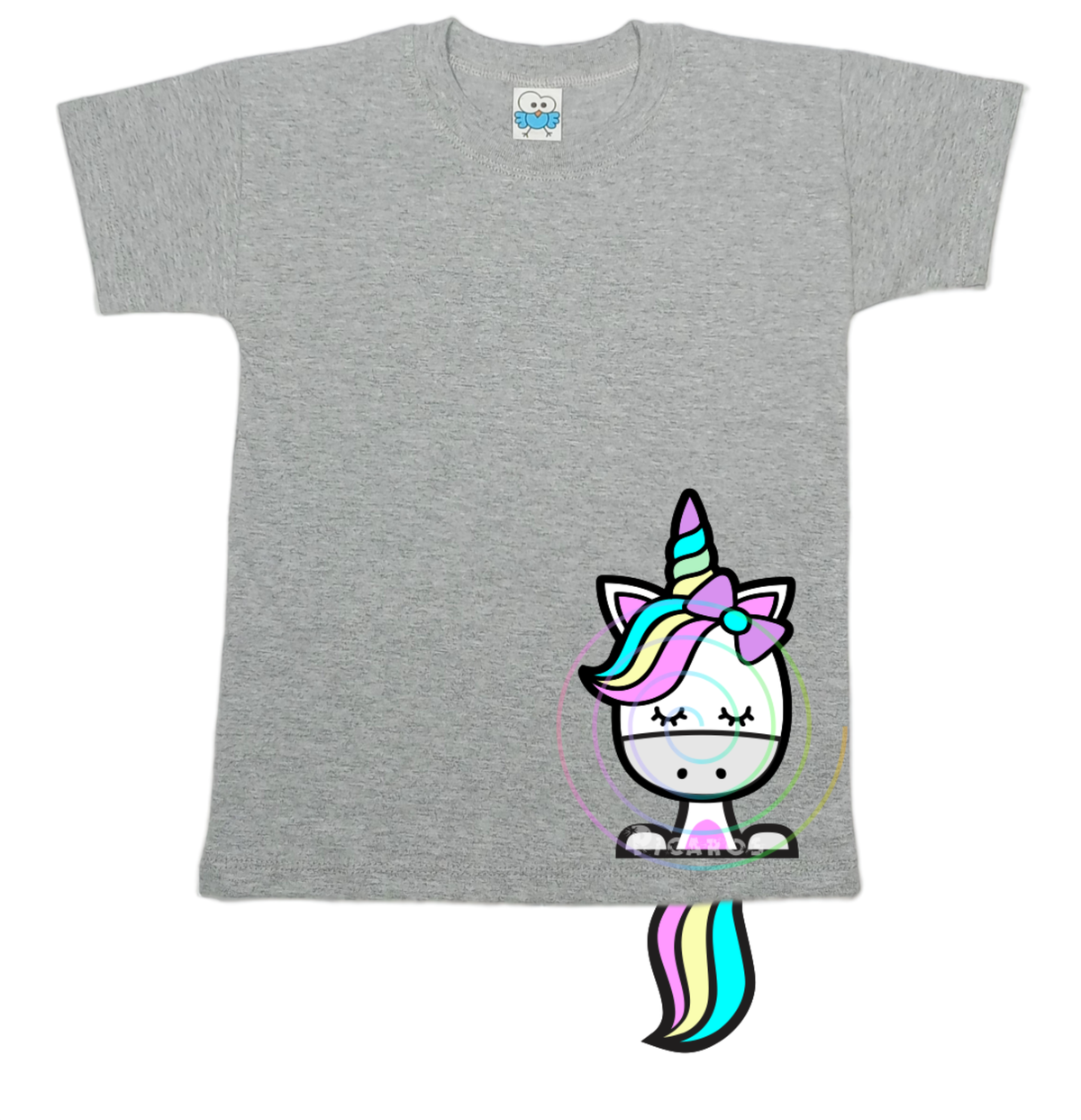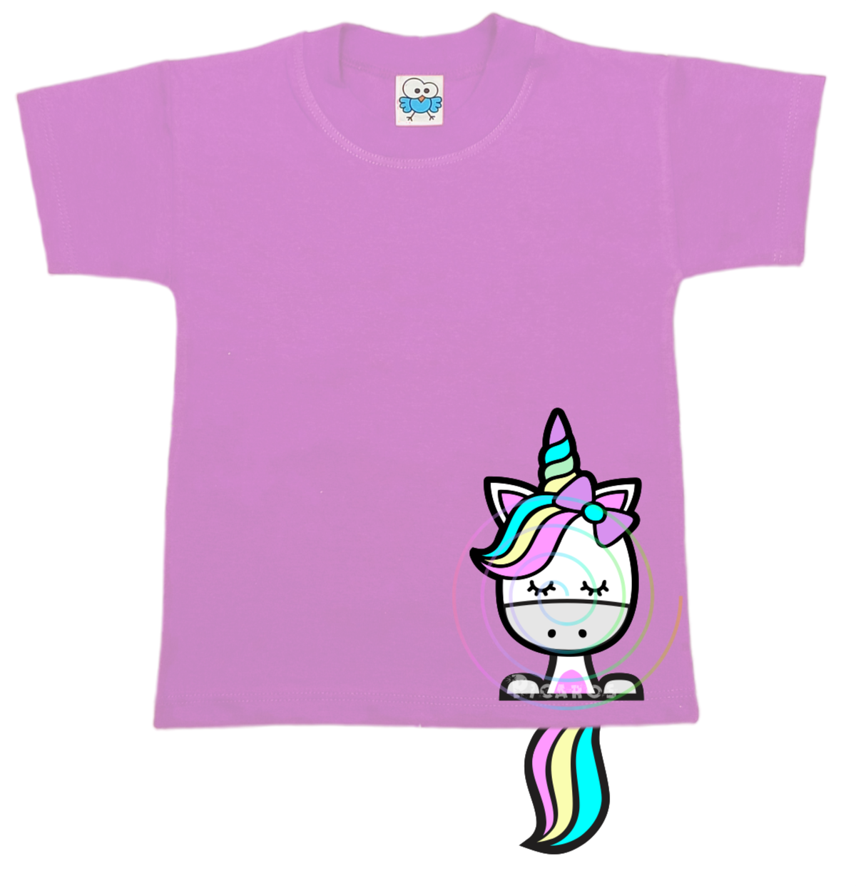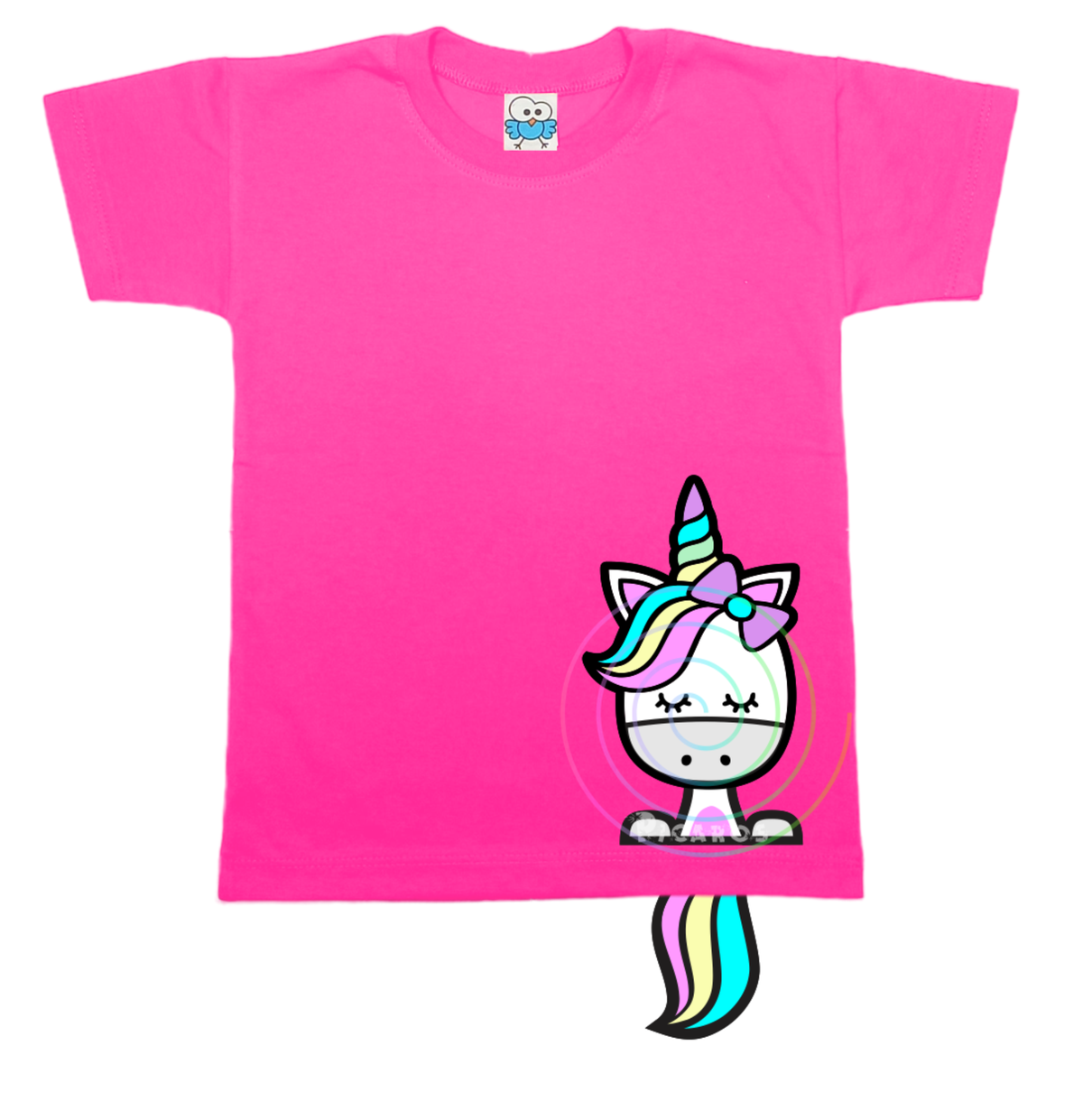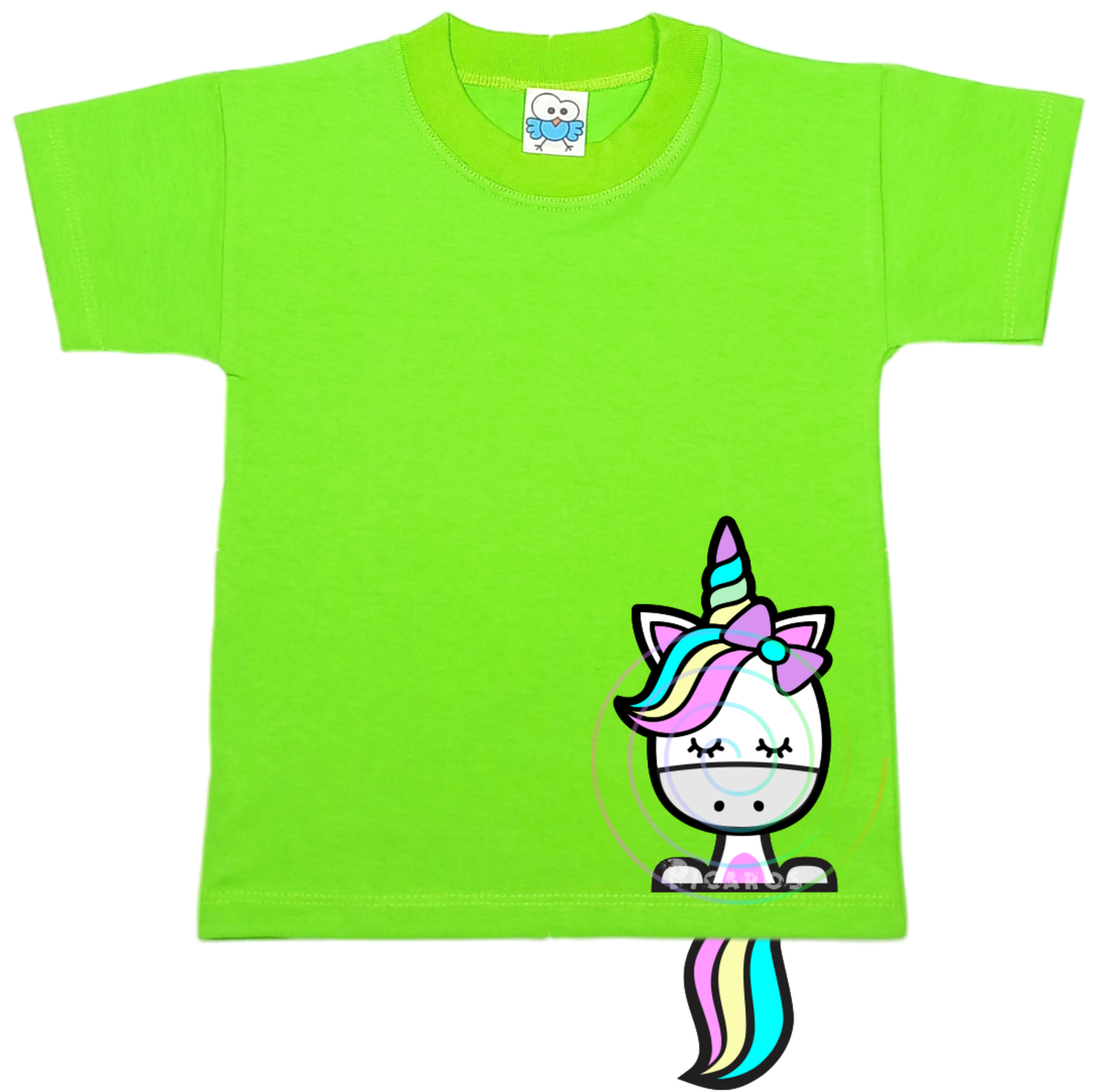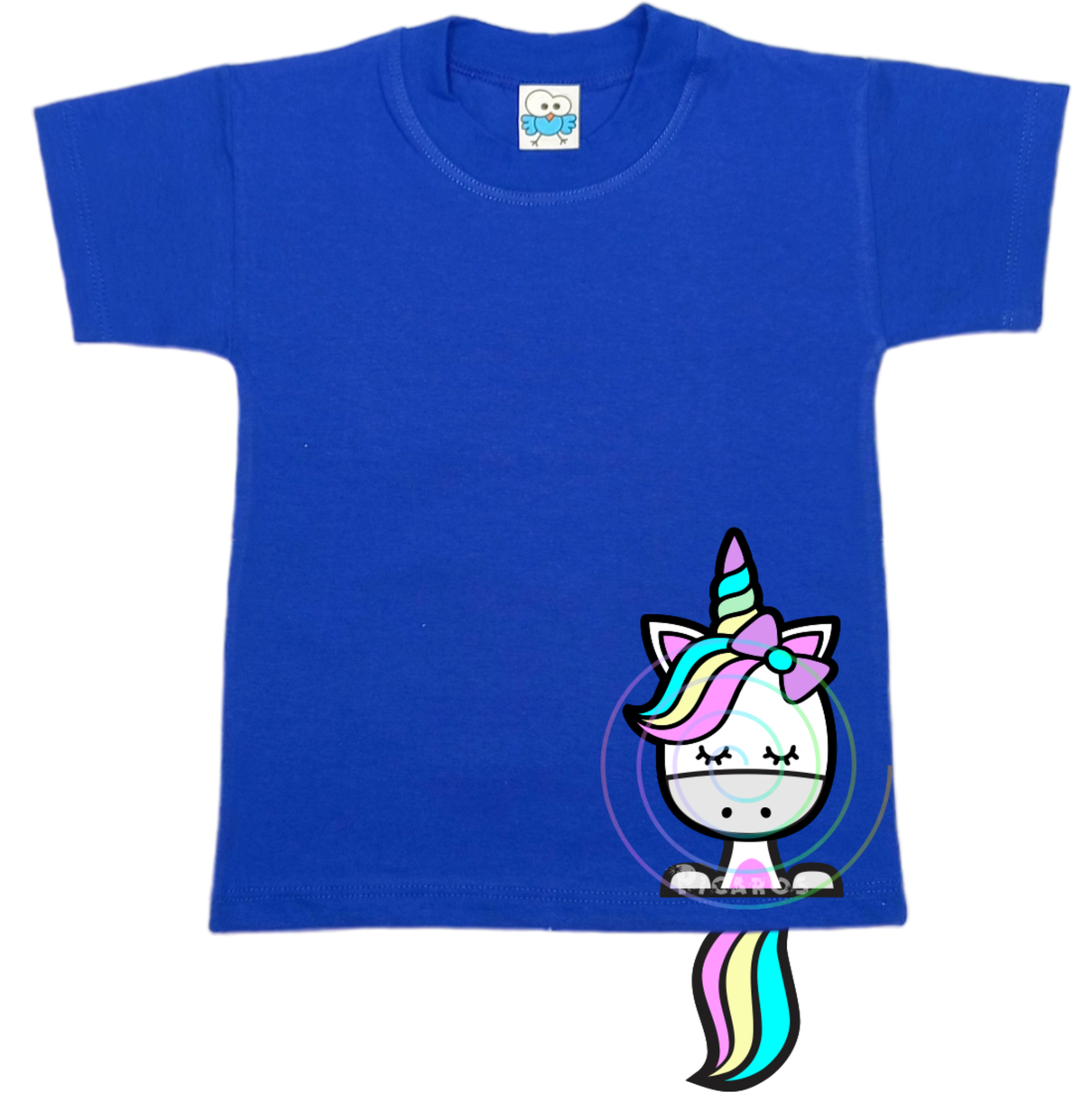DISEÑO DE UNICORNIO QUE LE SOBRESALE LA COLITA DE LA REMERA