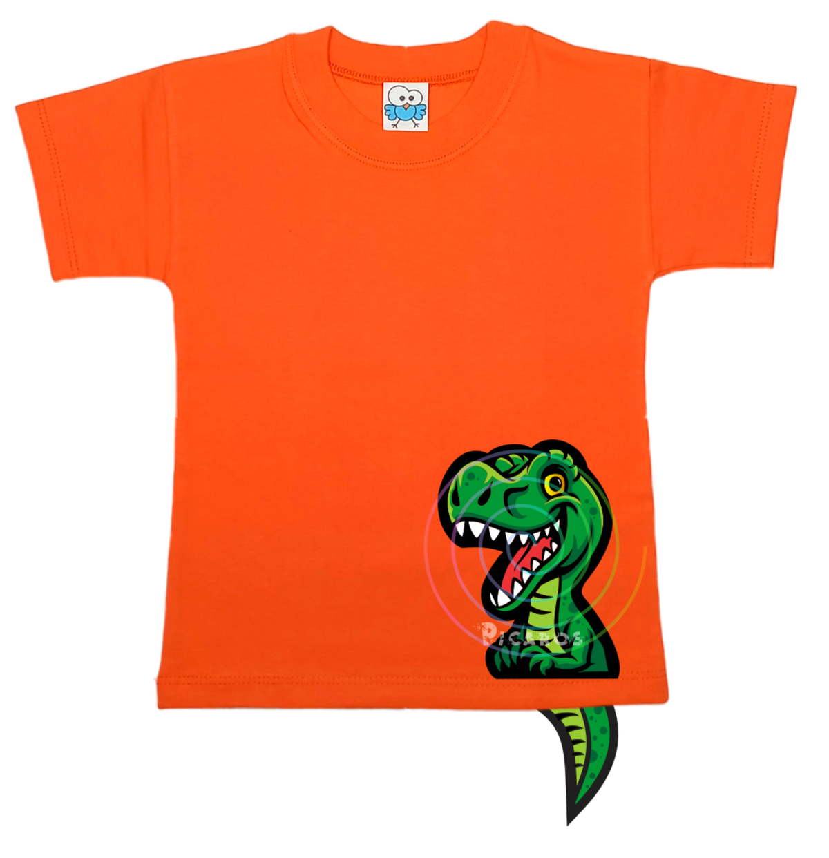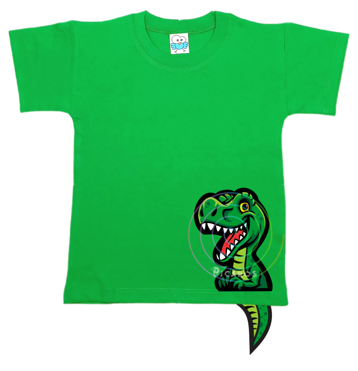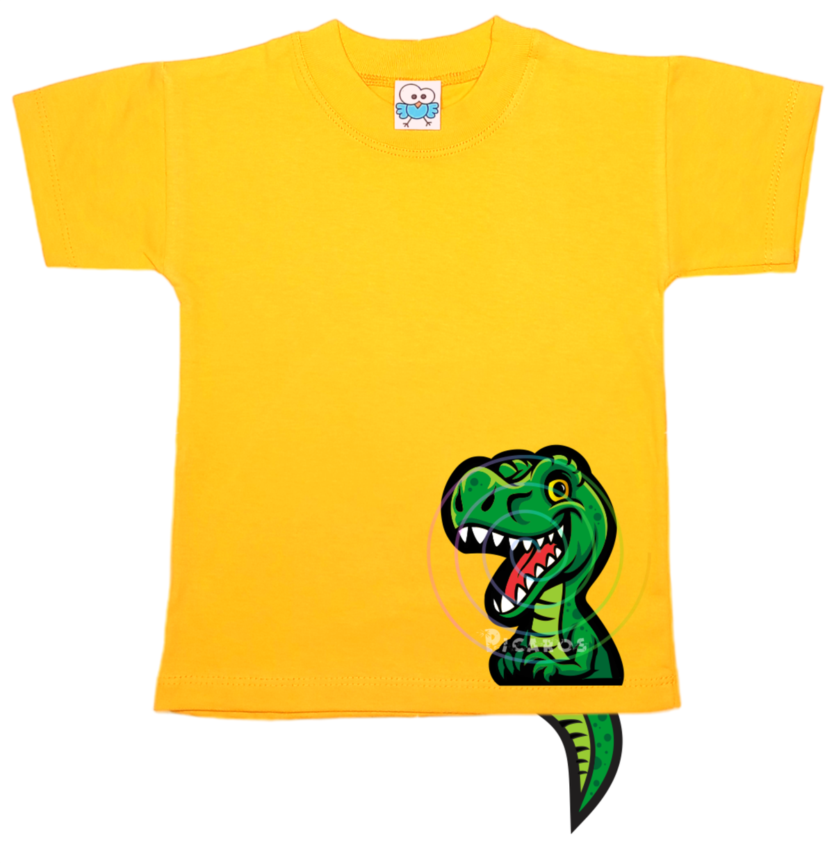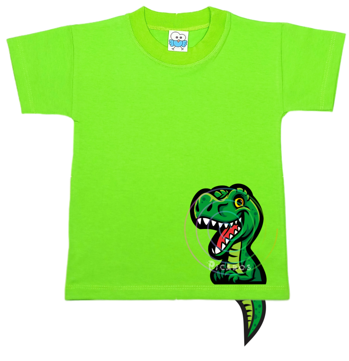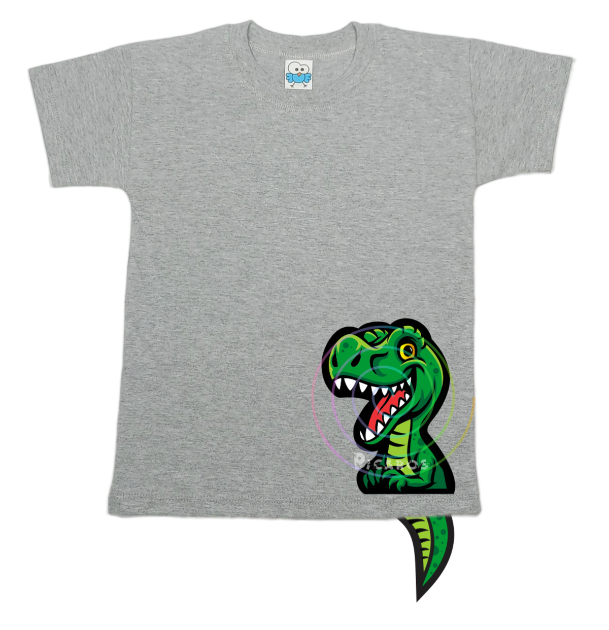 DISEÑO DE DINOSAURIO CON COLITA QUE SOBRESALE DE LA REMERA