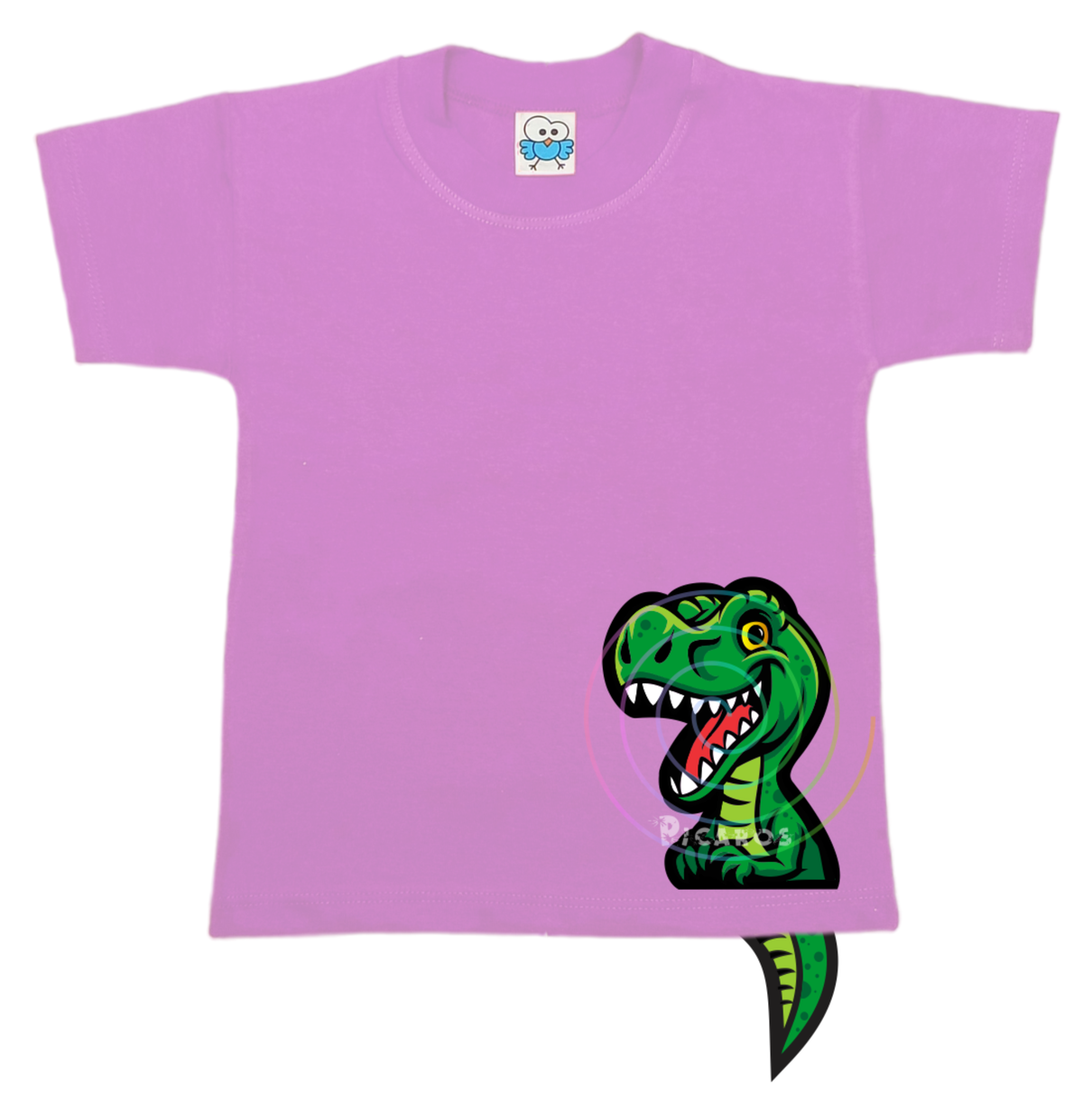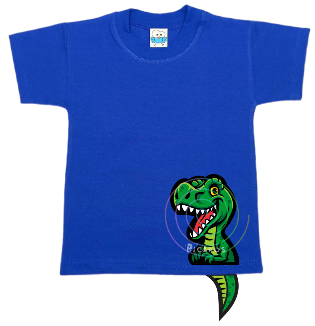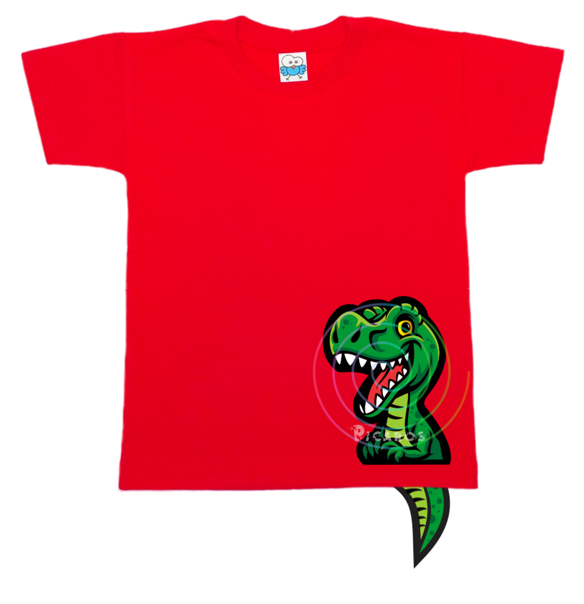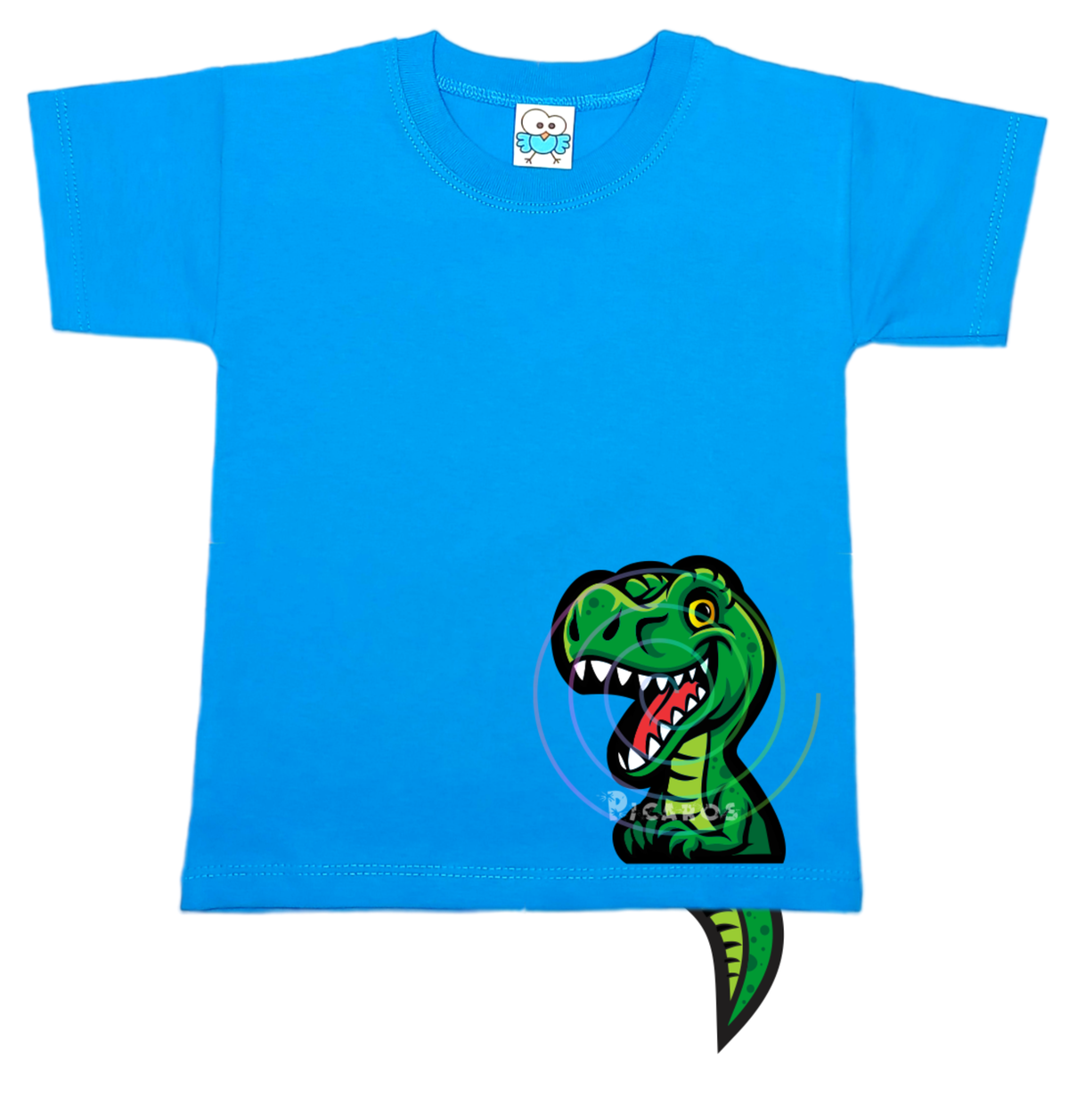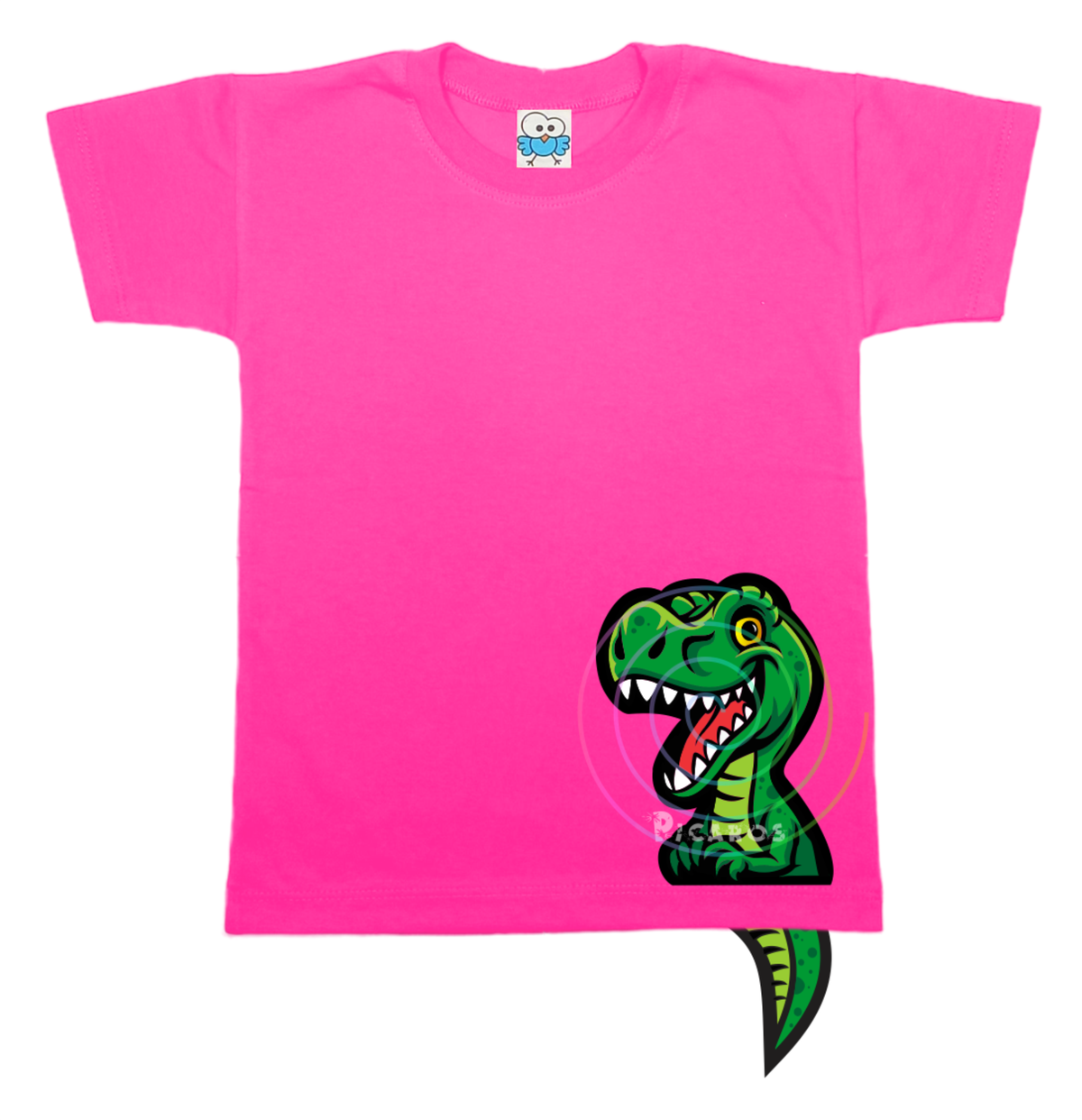 DISEÑO DE DINOSAURIO CON COLITA QUE SOBRESALE DE LA REMERA