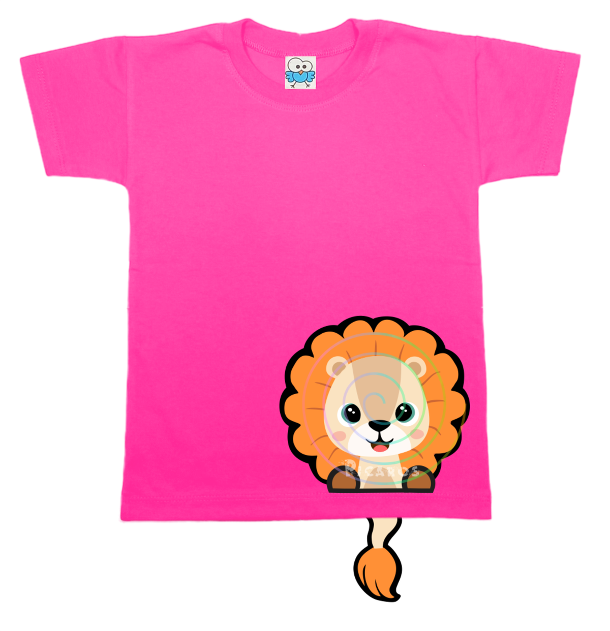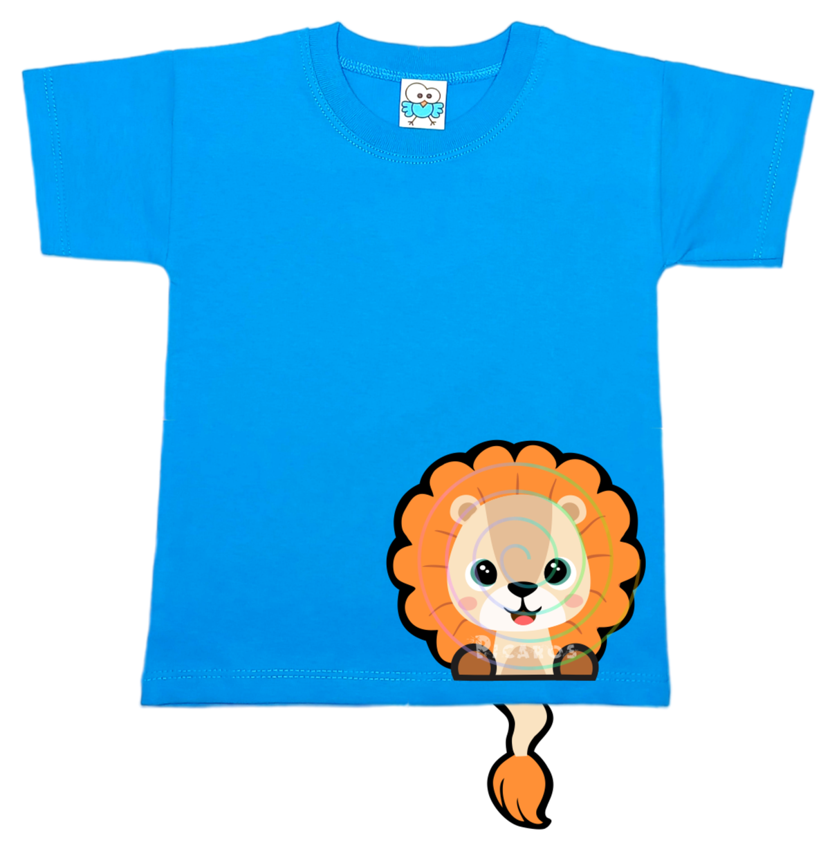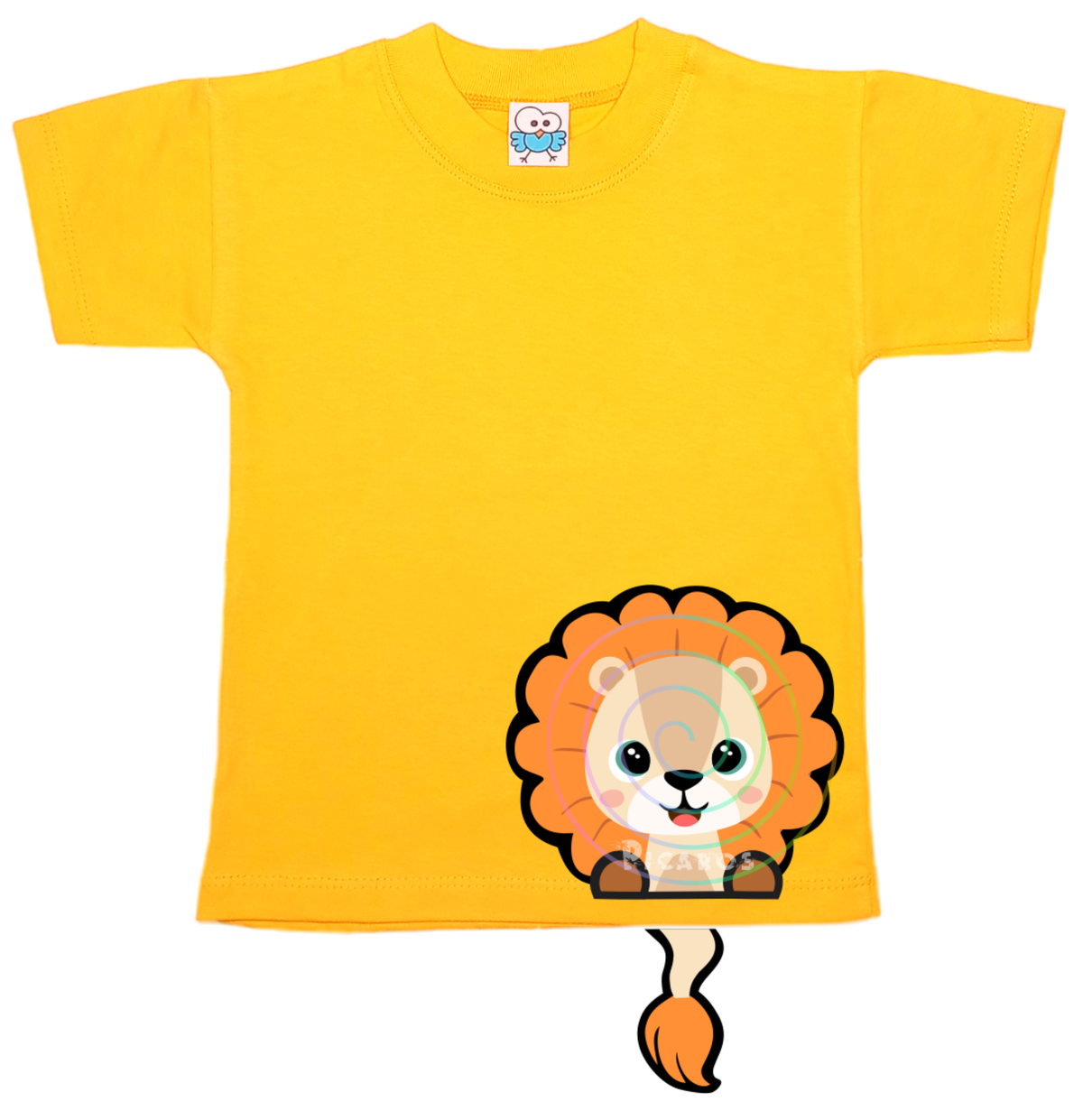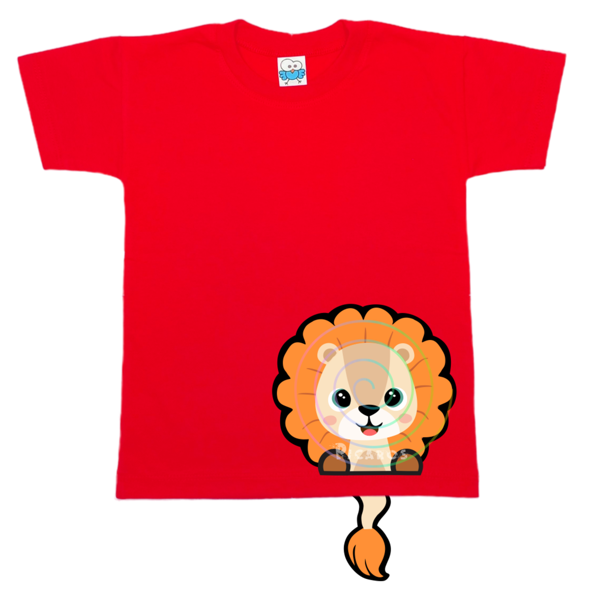 DISEÑO DE LEÓN CON COLITA QUE SOBRESALE DE LA REMERA