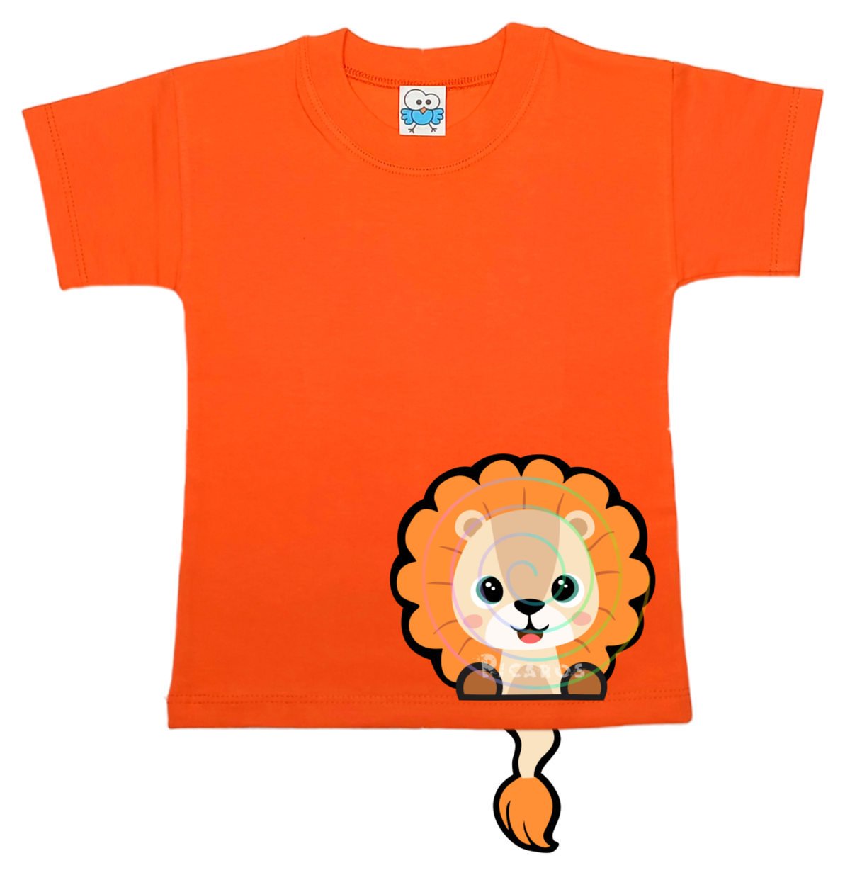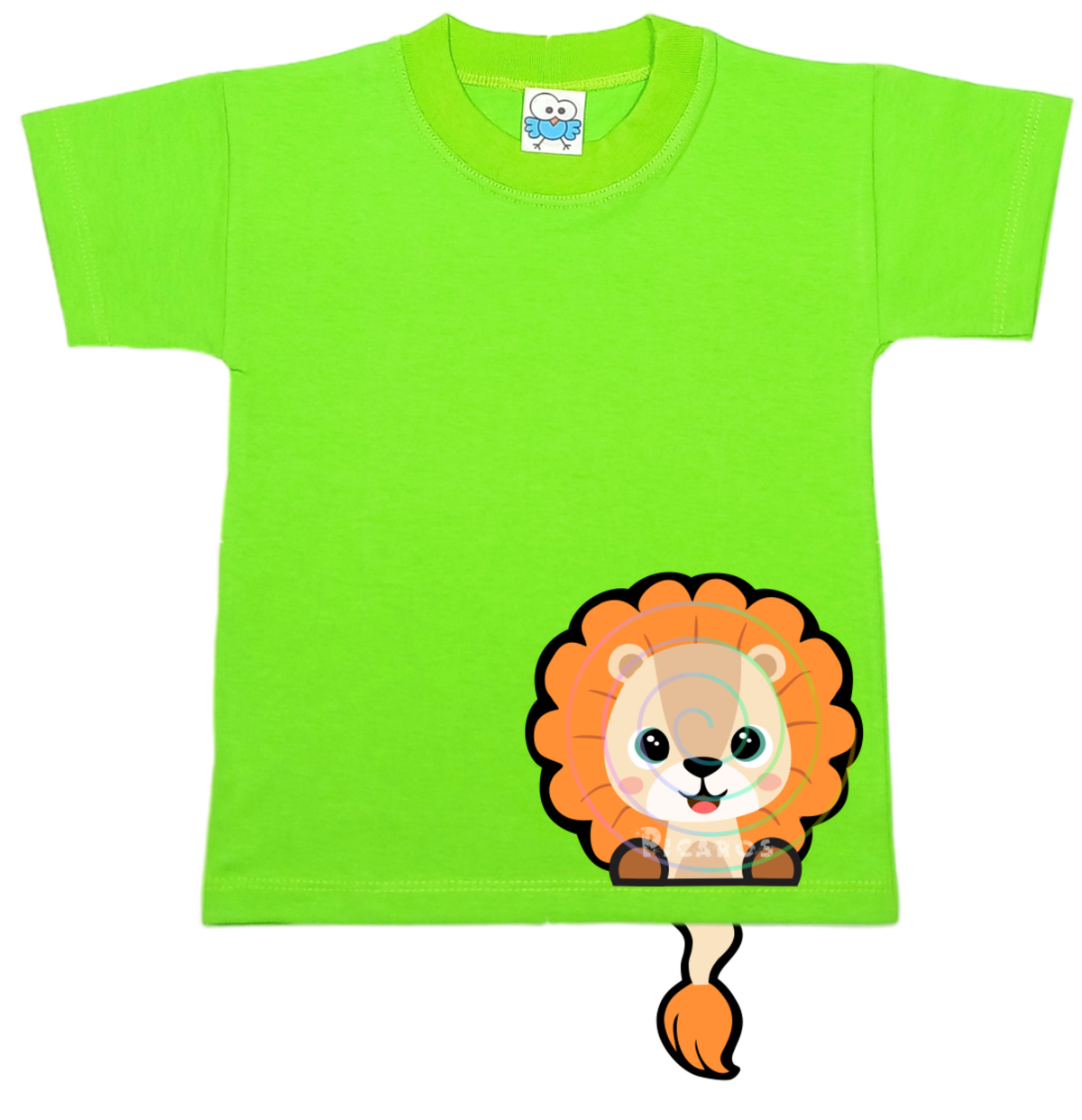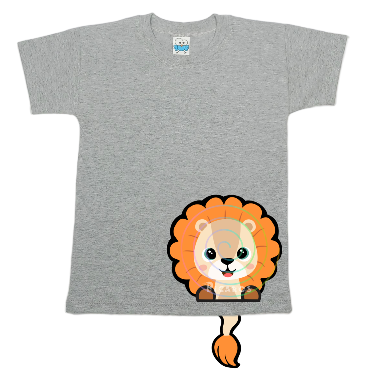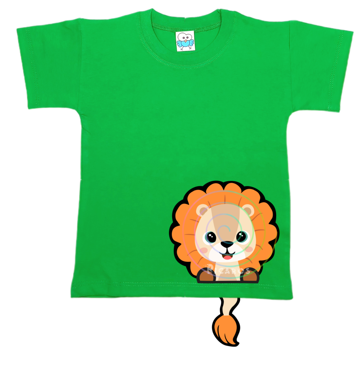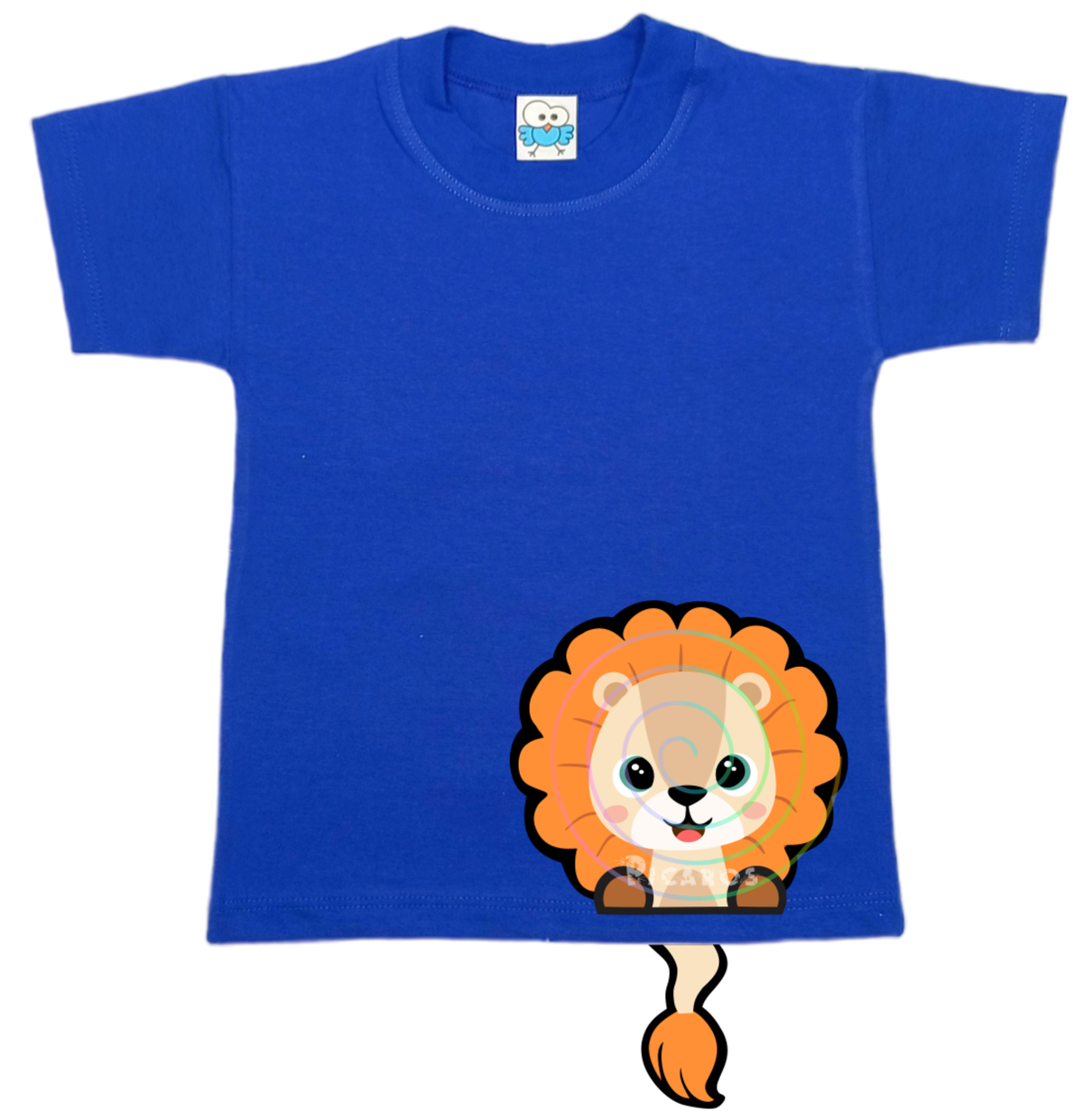 DISEÑO DE LEÓN CON COLITA QUE SOBRESALE DE LA REMERA
