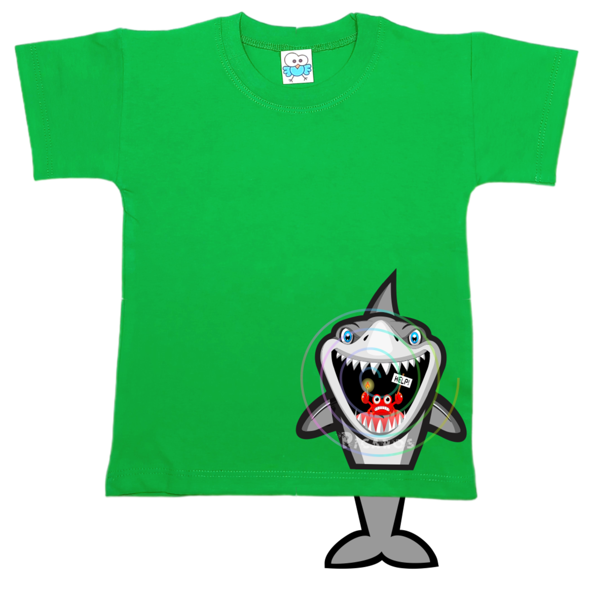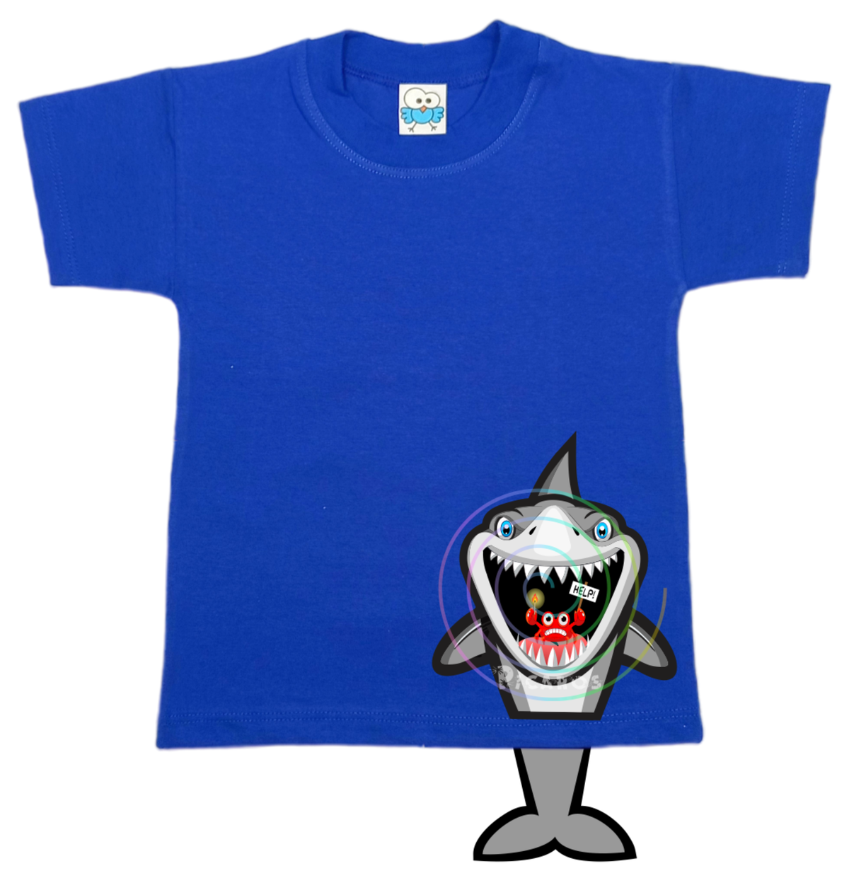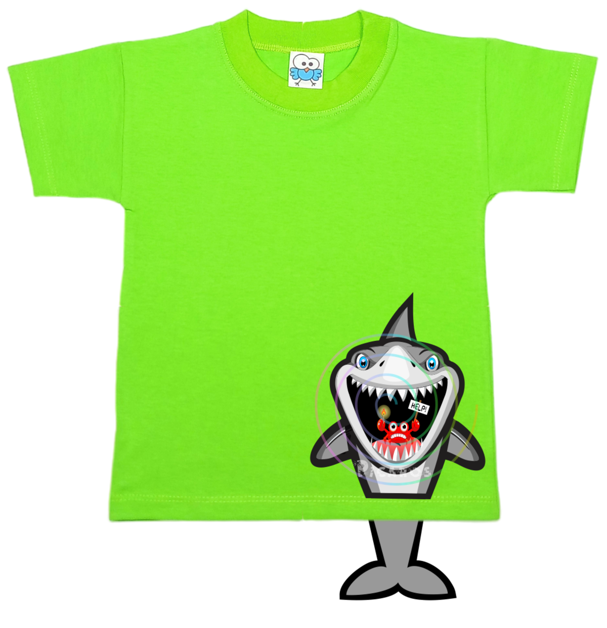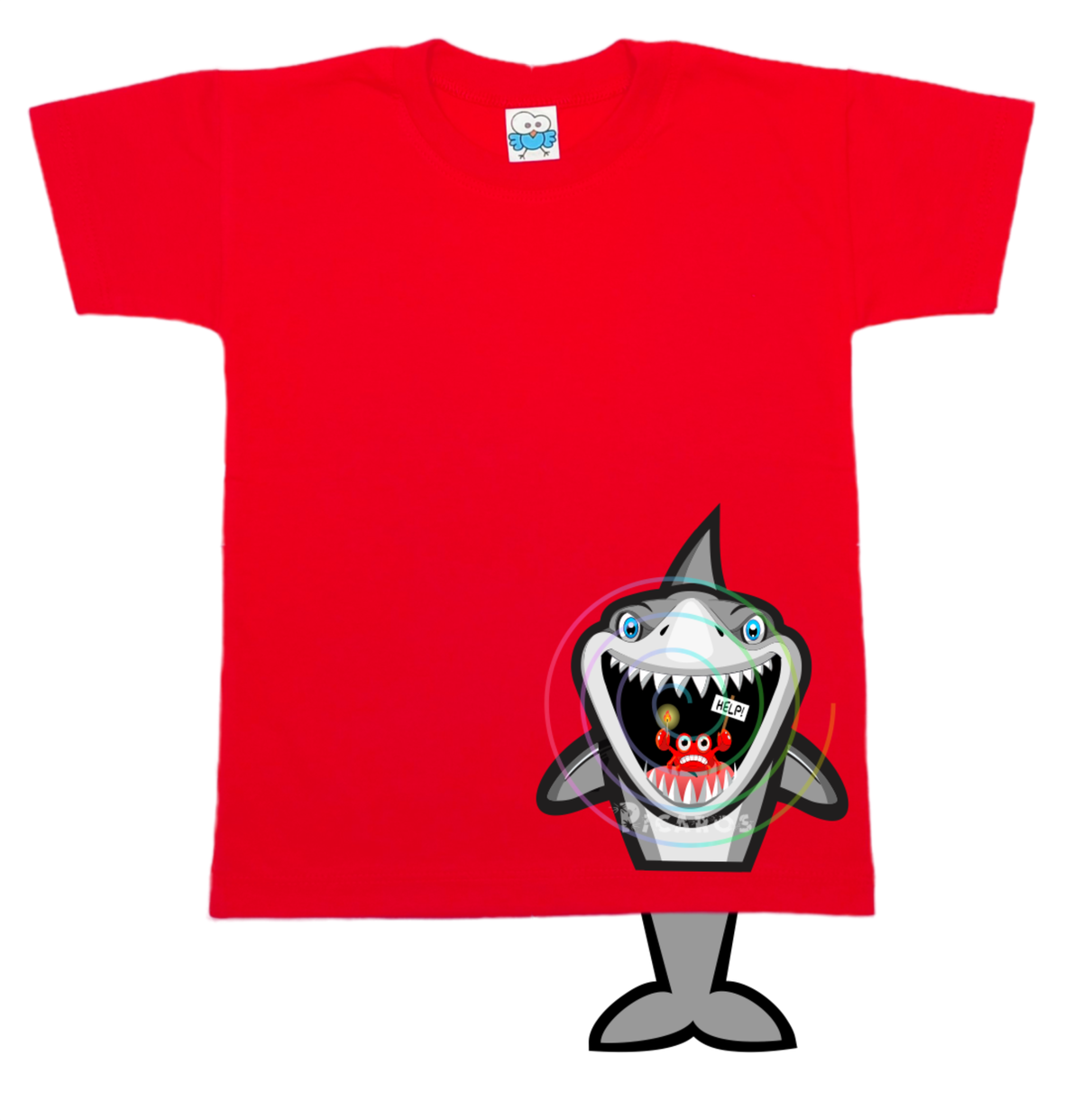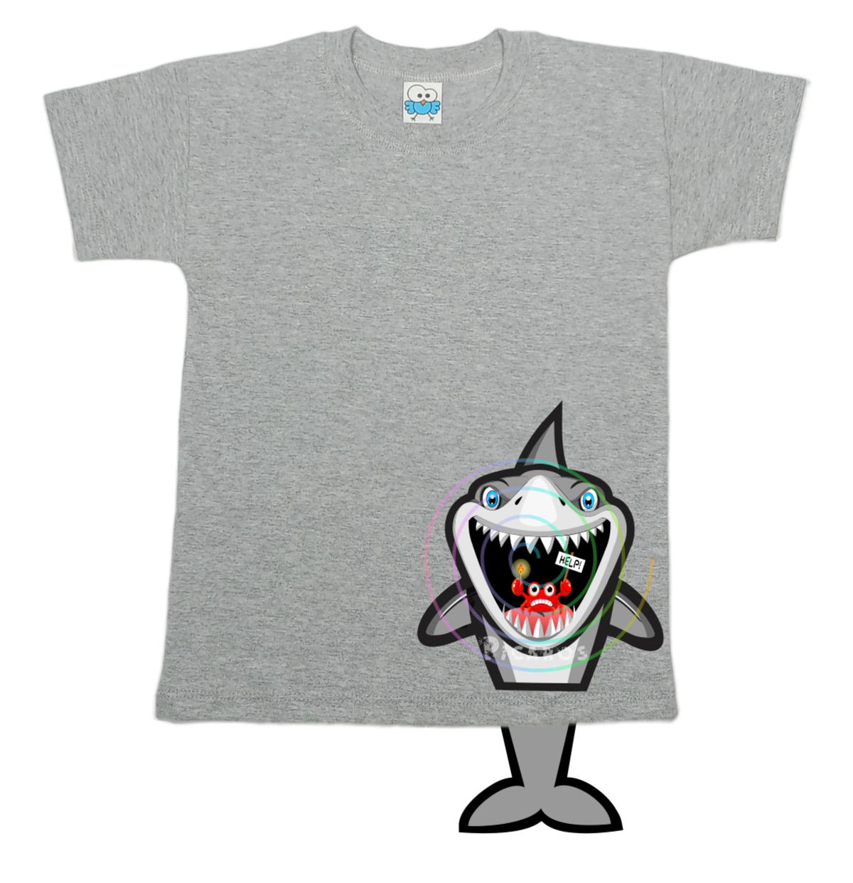 DISEÑO DE TIBURÓN CON COLITA QUE SOBRESALE DE LA REMERA