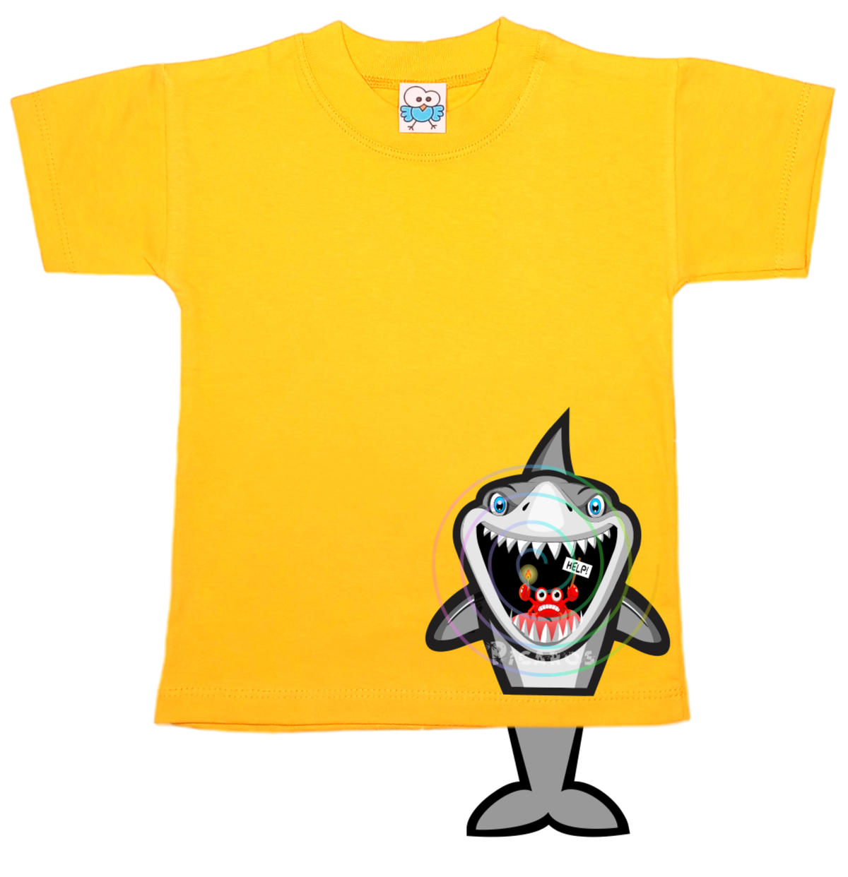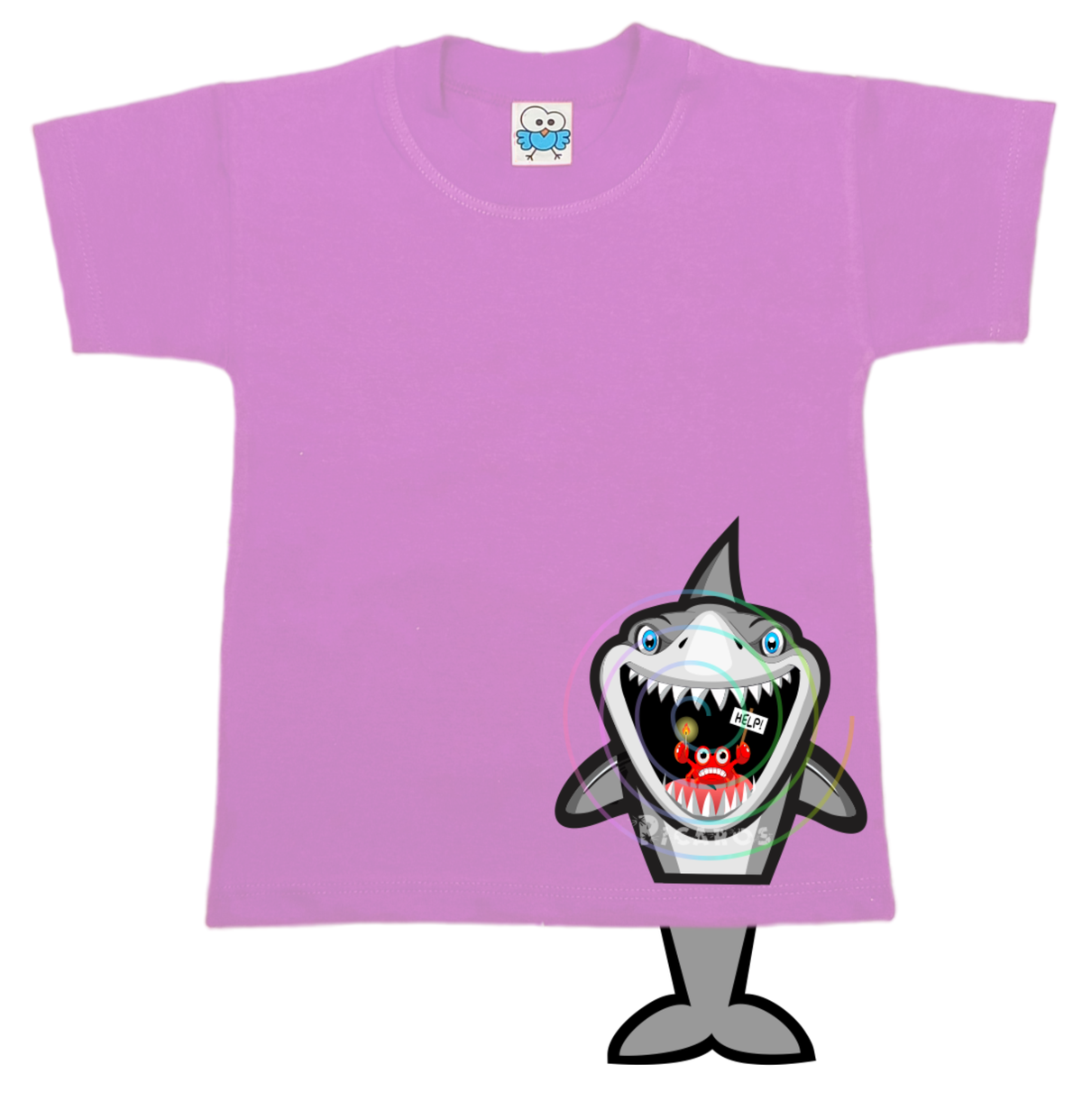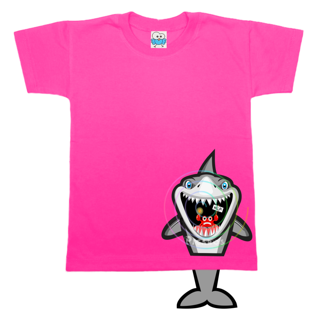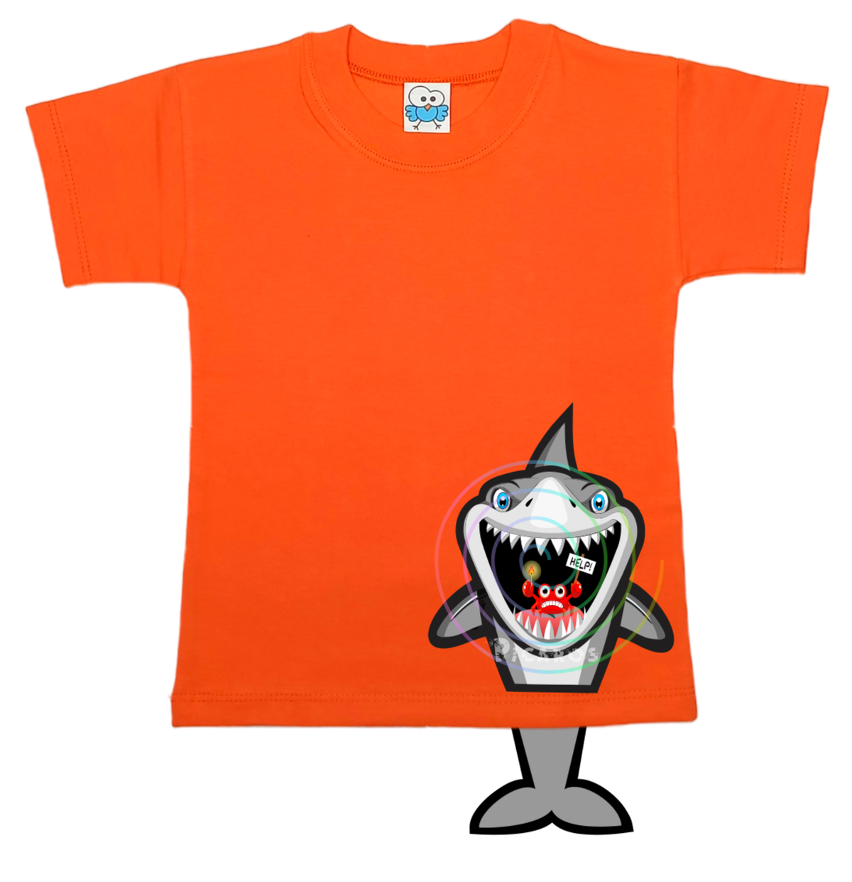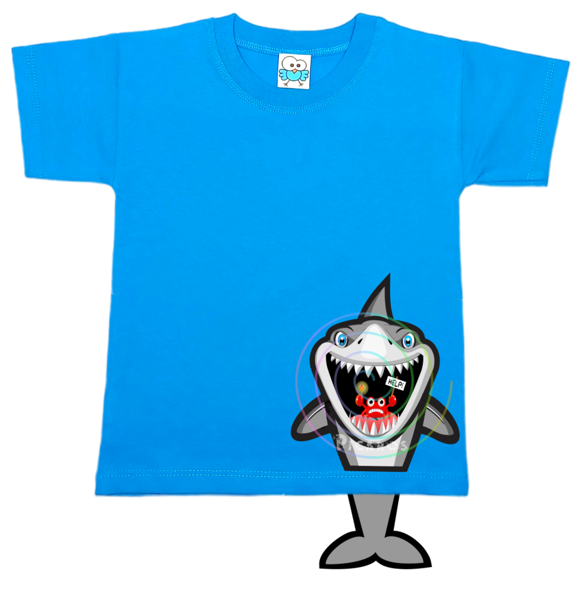 DISEÑO DE TIBURÓN CON COLITA QUE SOBRESALE DE LA REMERA
