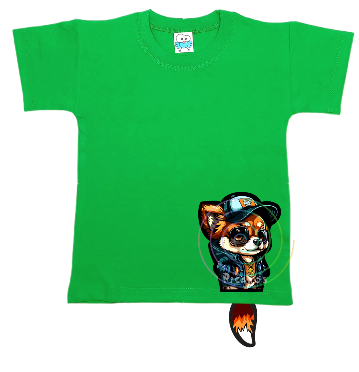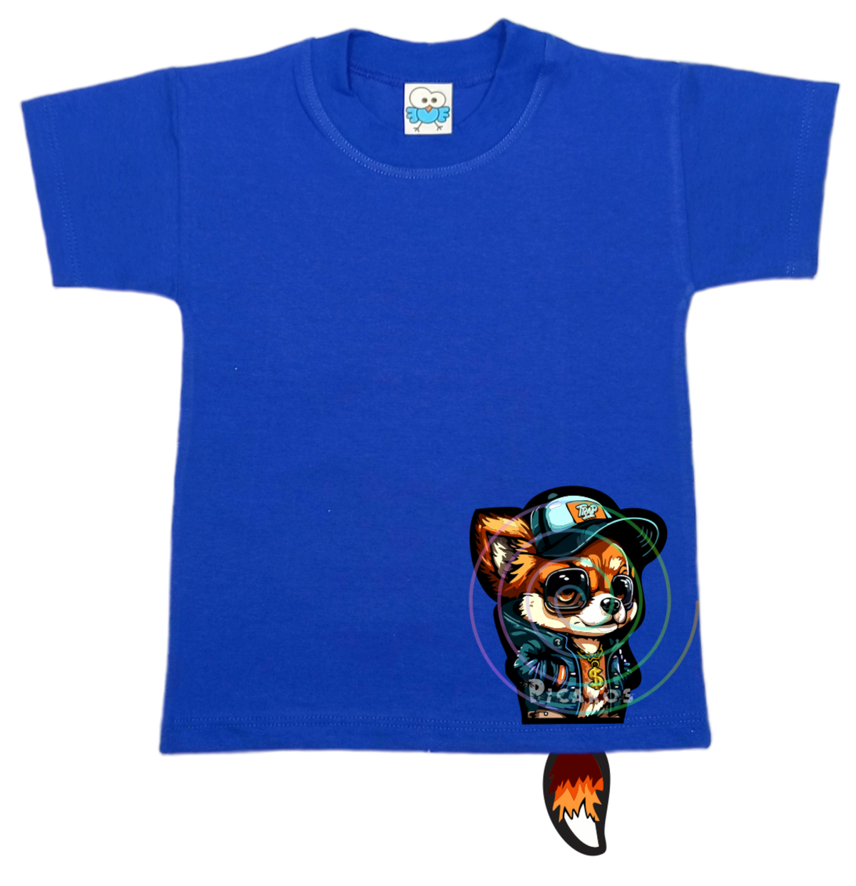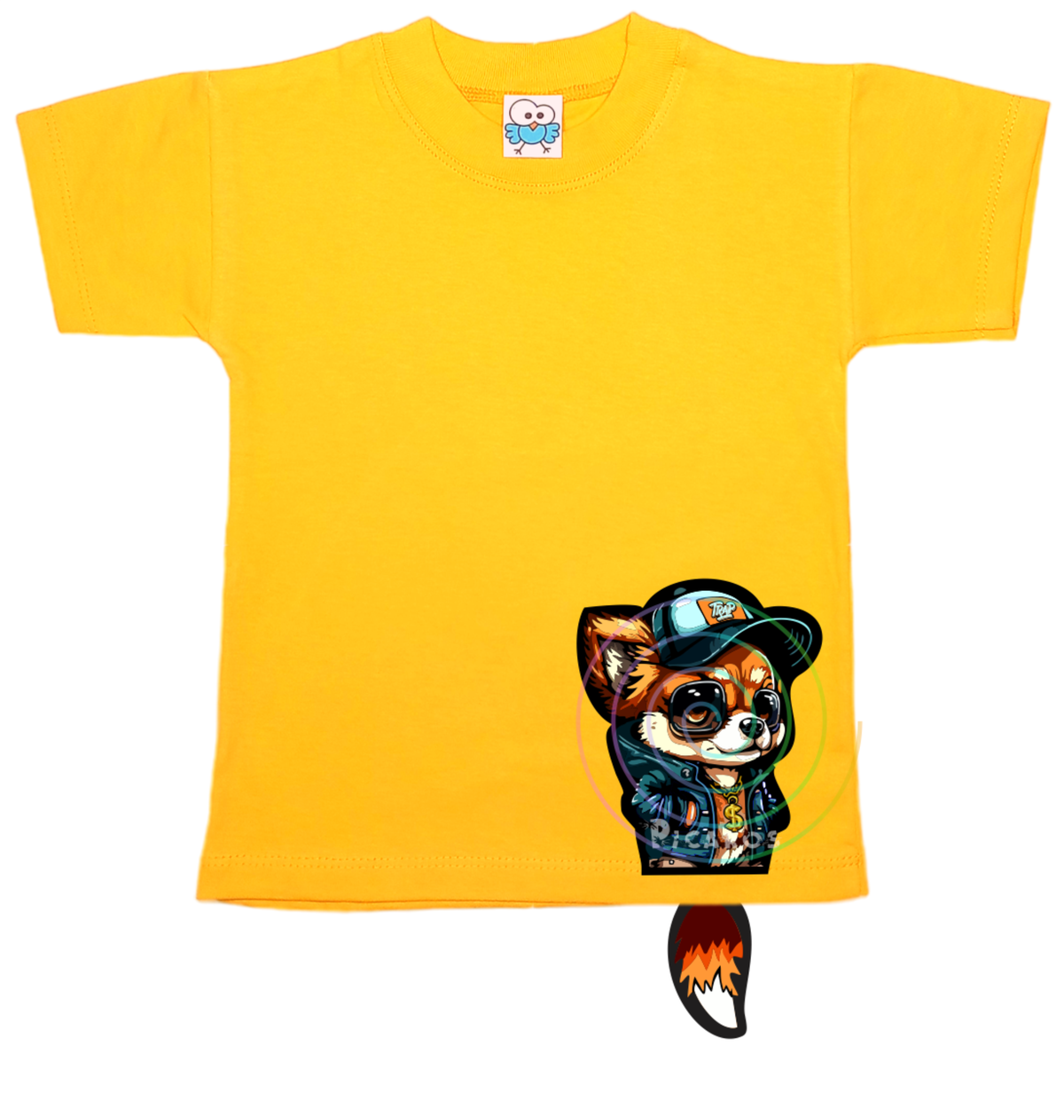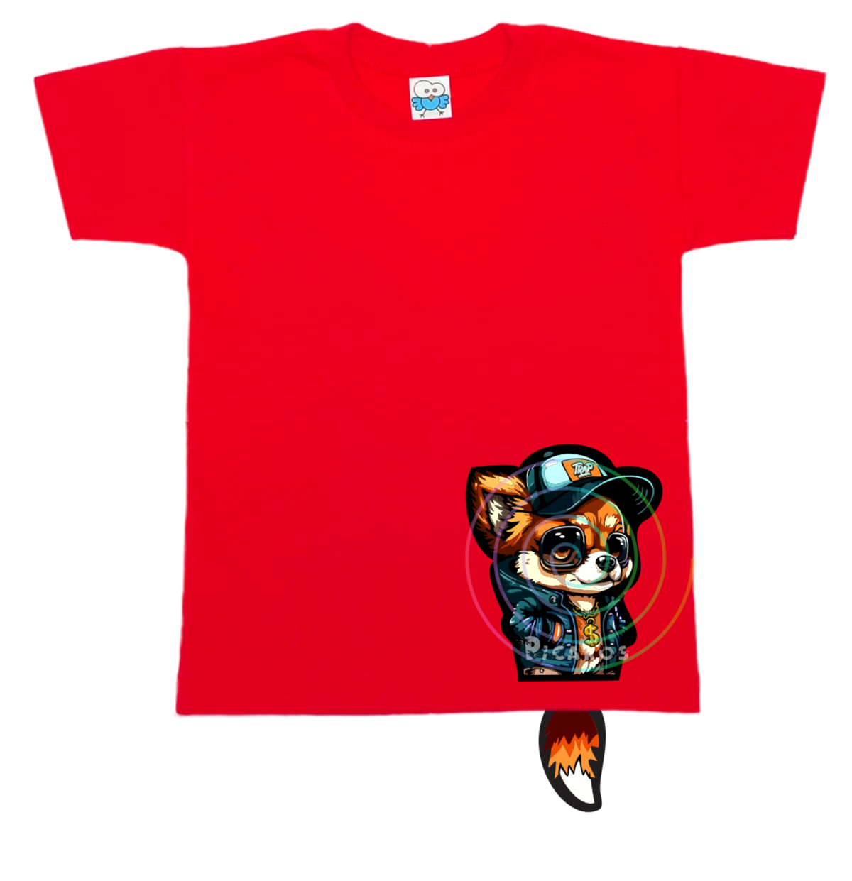 DISEÑO DE ZORRITO CON COLITA QUE SOBRESALE DE LA REMERA