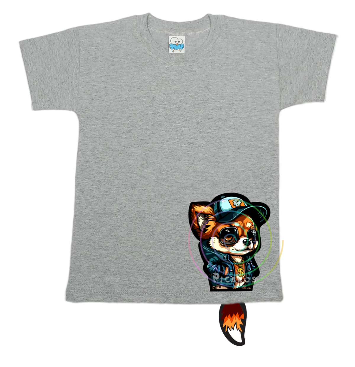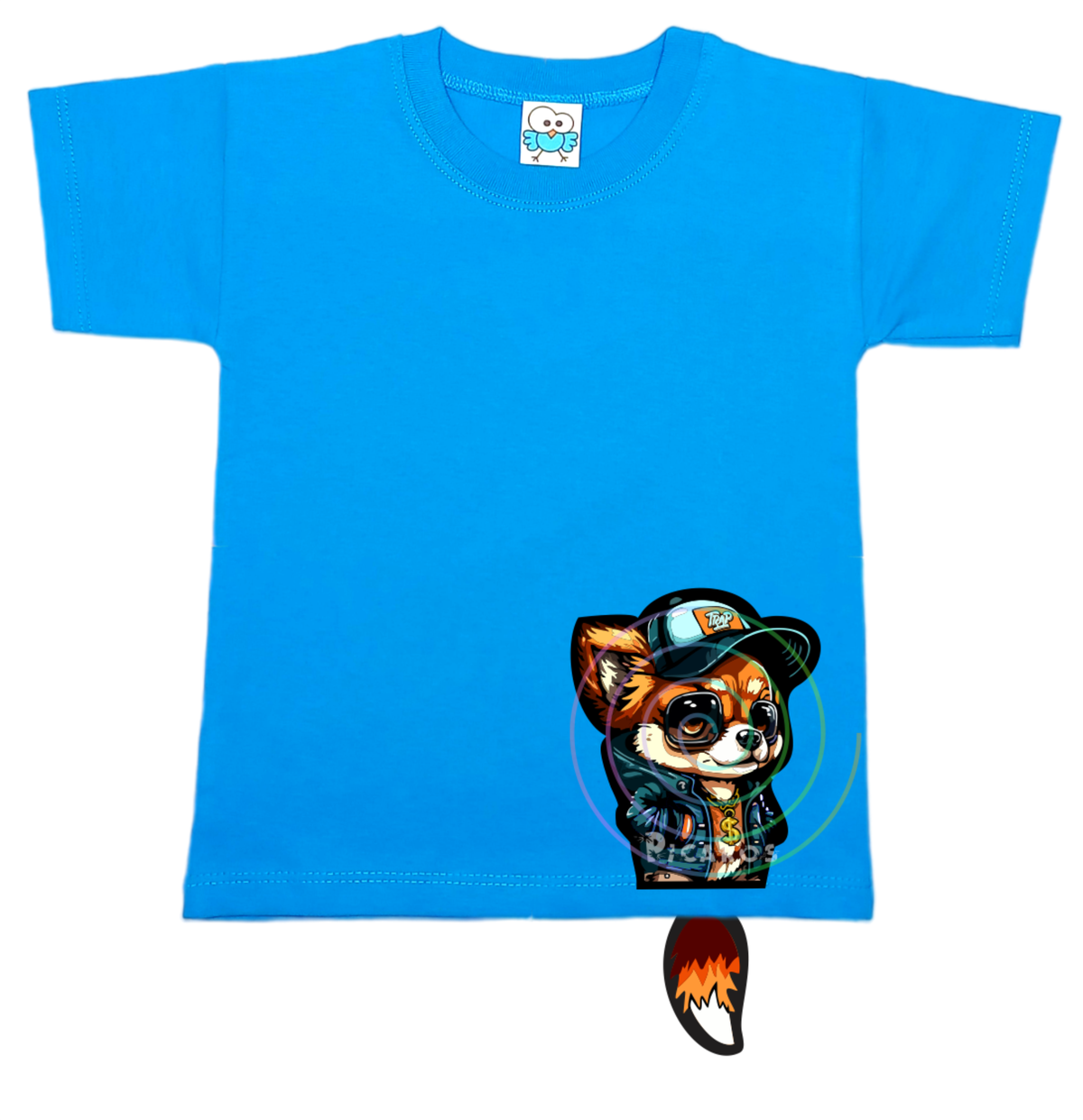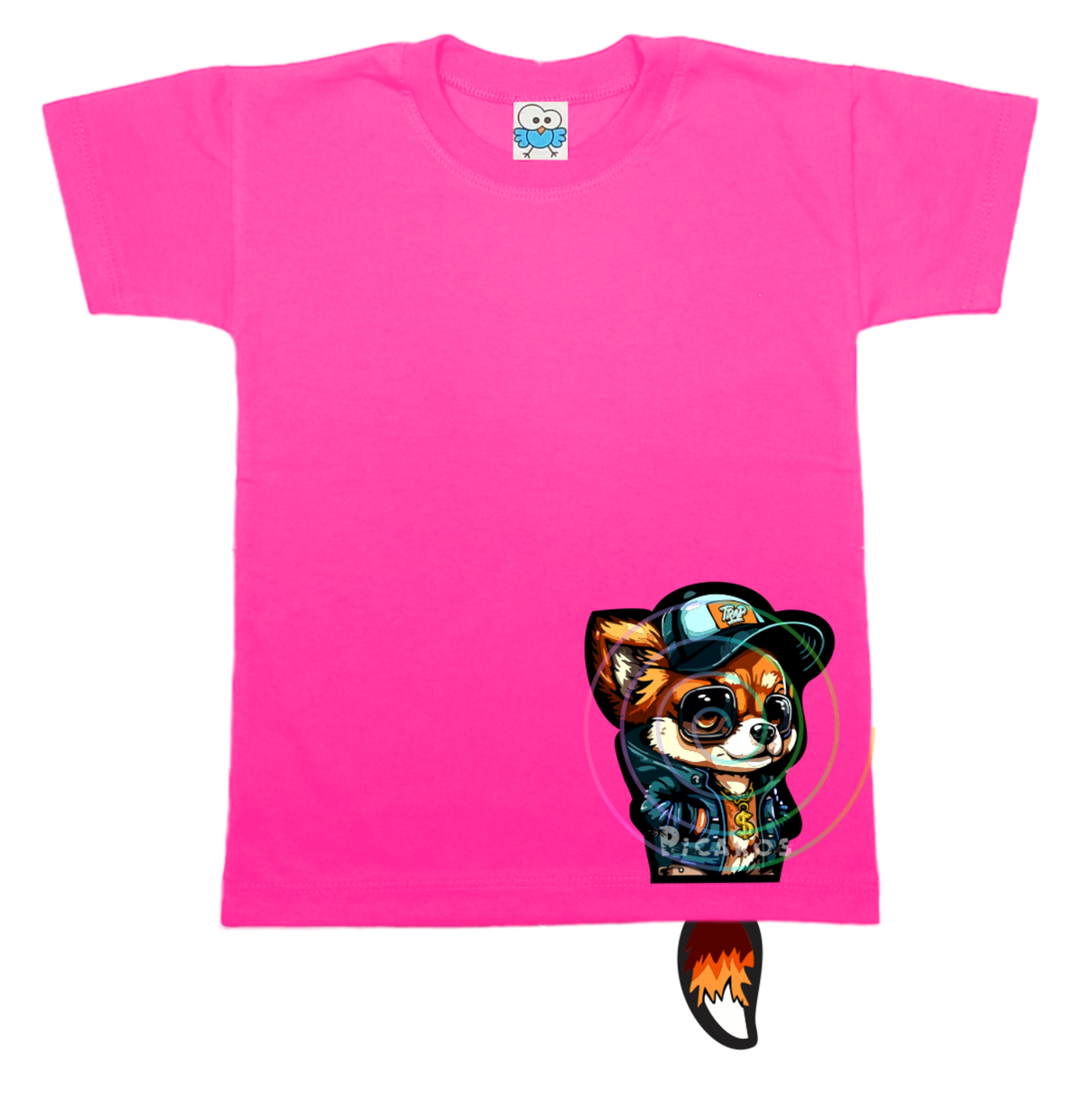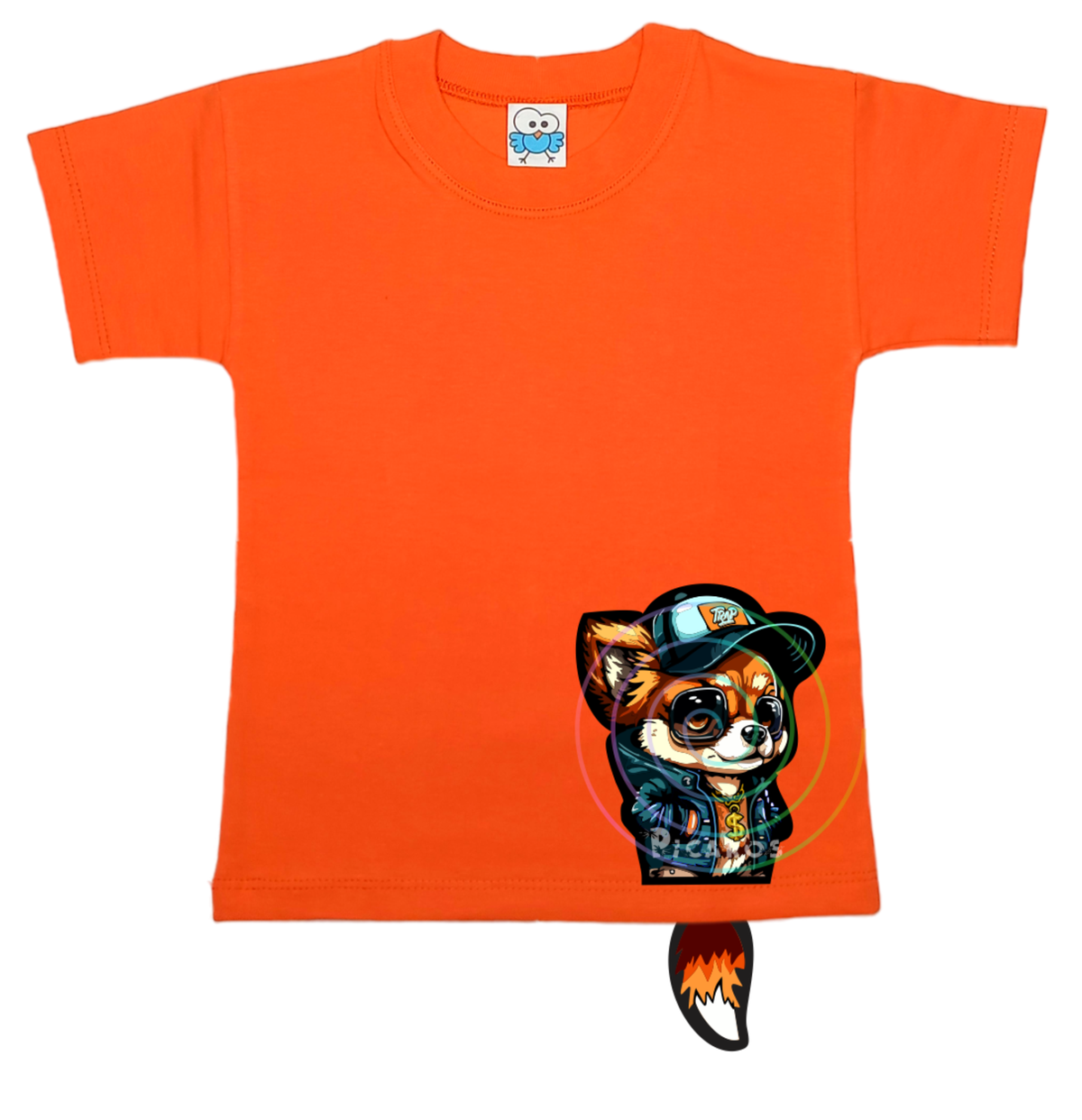 DISEÑO DE ZORRITO CON COLITA QUE SOBRESALE DE LA REMERA